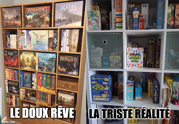 J’ai une étagère sur laquelle est posé un certain nombre de pièces, dont les jeux sont parfaitement identifiés, mais auxquelles la flemme (la mienne) a interdit tout retour en terre natale, quelques centimètres plus loin ![]()