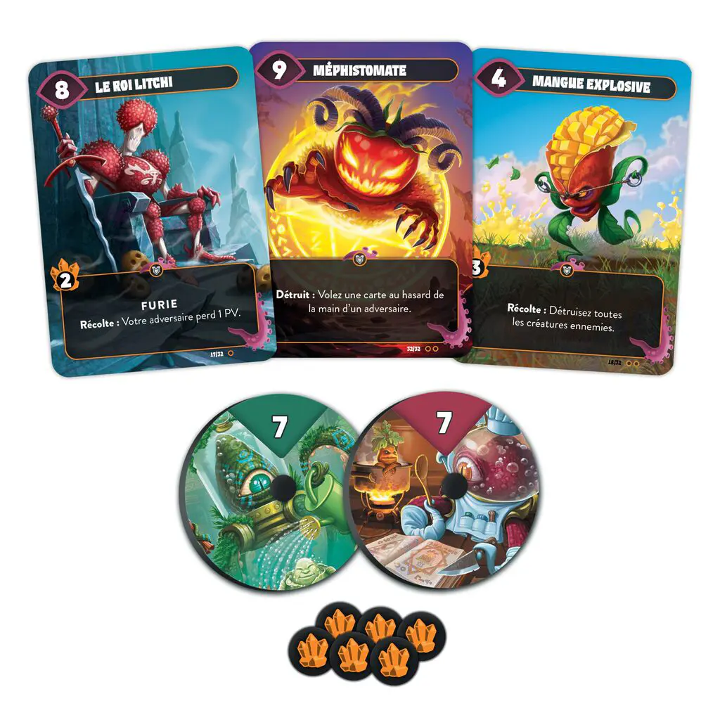 Merci pour ton retour détaillé ! Pour les fruits il y a aussi 2 boîtes : Mindbug Bataille de Fruits - Royale et Mindbug Bataille de Fruits - Galactique, la version Galactique semble, sur le papier, un poil plus “gamer” par contre j’ai pu jouer avec quelques créatures de la version Royale sur l’appli et c’est rigolo tout en étant pas bien compliqué : certaines créatures viennent avec un certain nombre de jetons sur elles, on retire 1 jeton au début de son tour et quand on enlève le dernier on déclenche un effet et c’est tout. J’ai trouvé que c’était sympa sans trop complexifier et du peu que j’ai vu il n’y a pas tant de cartes avec ces jetons que ça.