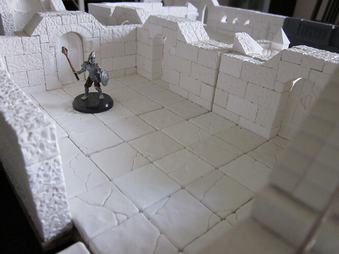 Mage knight 3D dungeon, premier que j'ai pu découvrir y a une douzaine d'années c'était trop gros pour mes jeux et moche -tout gris- avec des taquets pour enclencher les murs et portes qui se cassaient facilement. J'avais investi dans un donjon modulable en plâtre (2800FF à l'époque !) de marque anglaise que j'ai donné au final tellement c'était lourd, moche et pas pratique du tout à transporter.