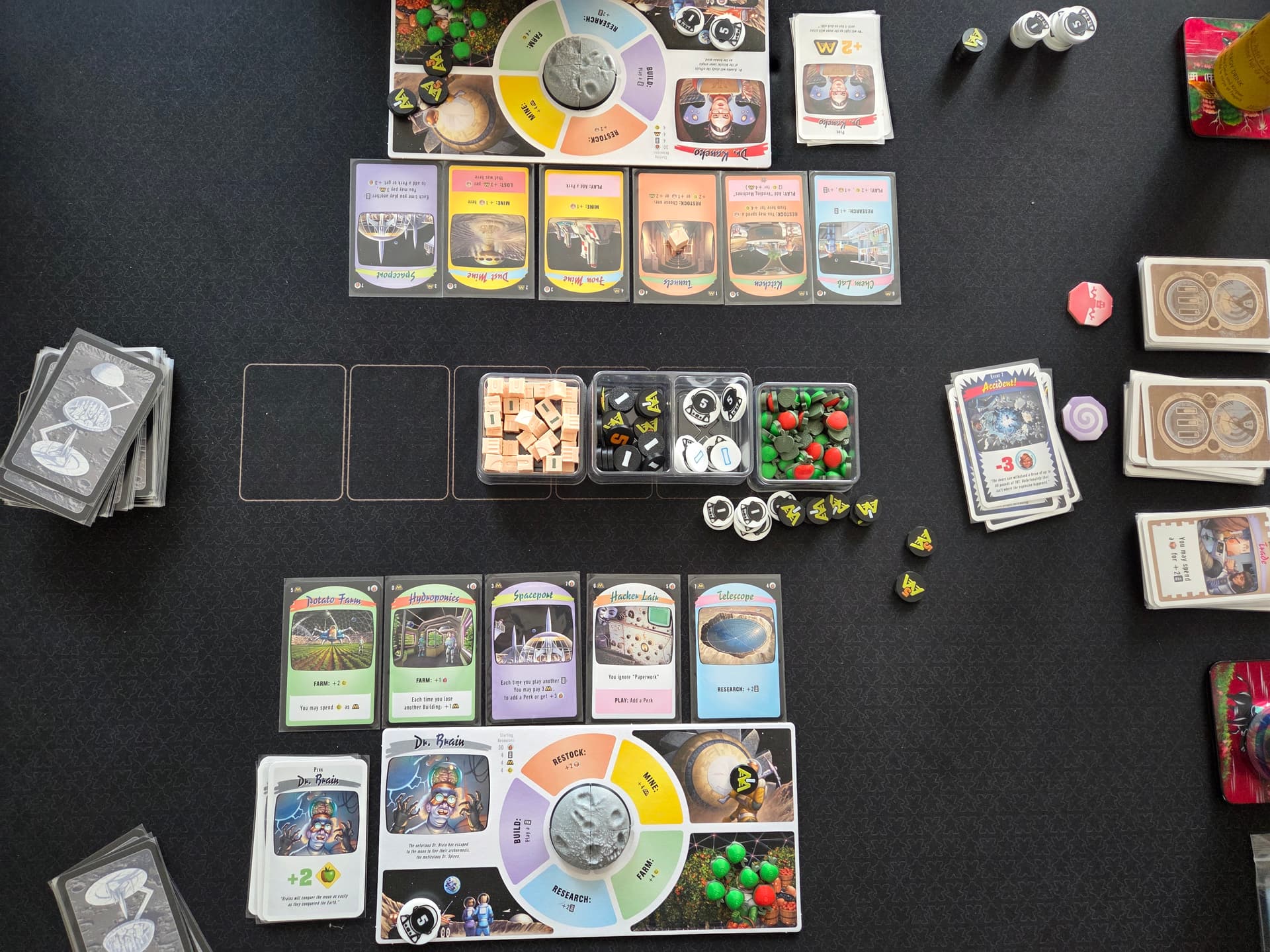 Au début, on joue les cartes pour leurs effets. Puis, peu à peu, on switch : on commence à les construire pour les habitants qui s’y trouvent… afin de nourrir les robots.