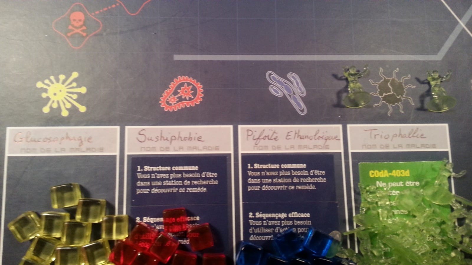 Les Maladies :Nous avons fait le choix de nous arrêter à la 2ème mutation positive car la chercheuse était vraiment efficace. Cela a payé pour avoir des constructions et des équipements confortables, mais les parties sans la chercheuse furent vraiment les plus tendues (je pense que la coordination pour les rendez-vous est notre plus grande difficulté).