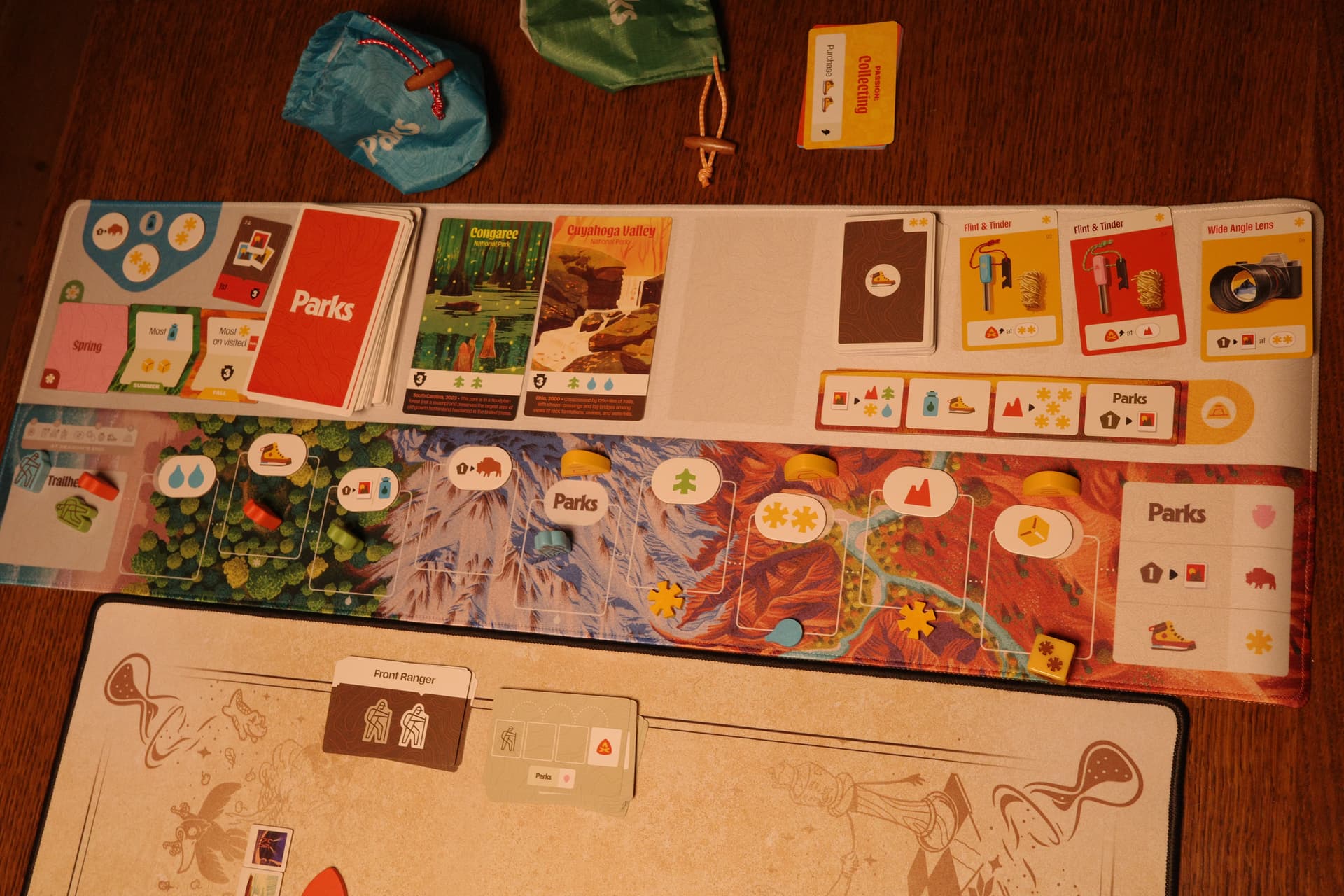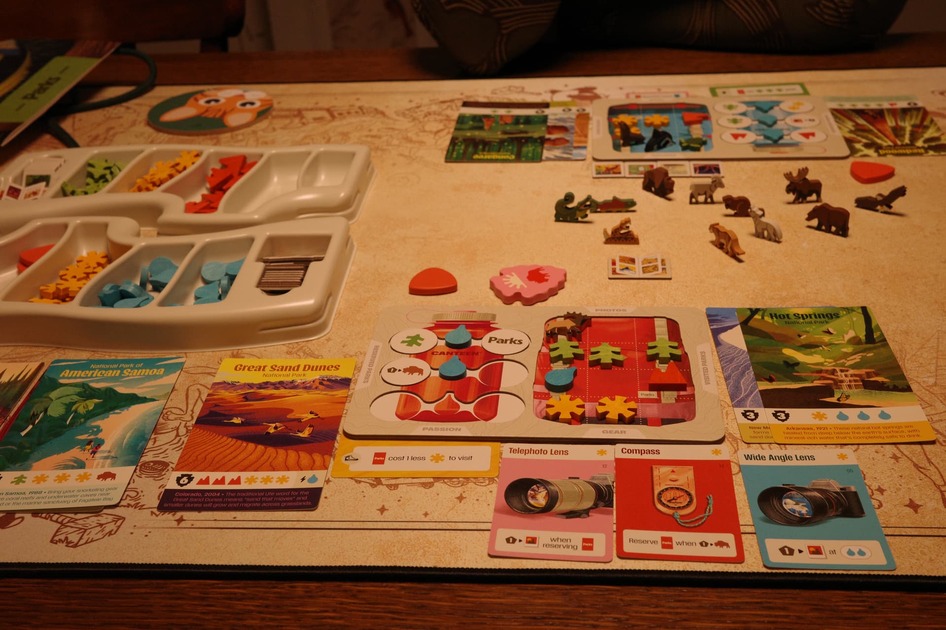 Ce fut une partie à 2 joueurs + automa. Ma compagne et moi sommes de gros joueurs de Parks première version, avec toutes les extensions et quelques ajustements “maison”.