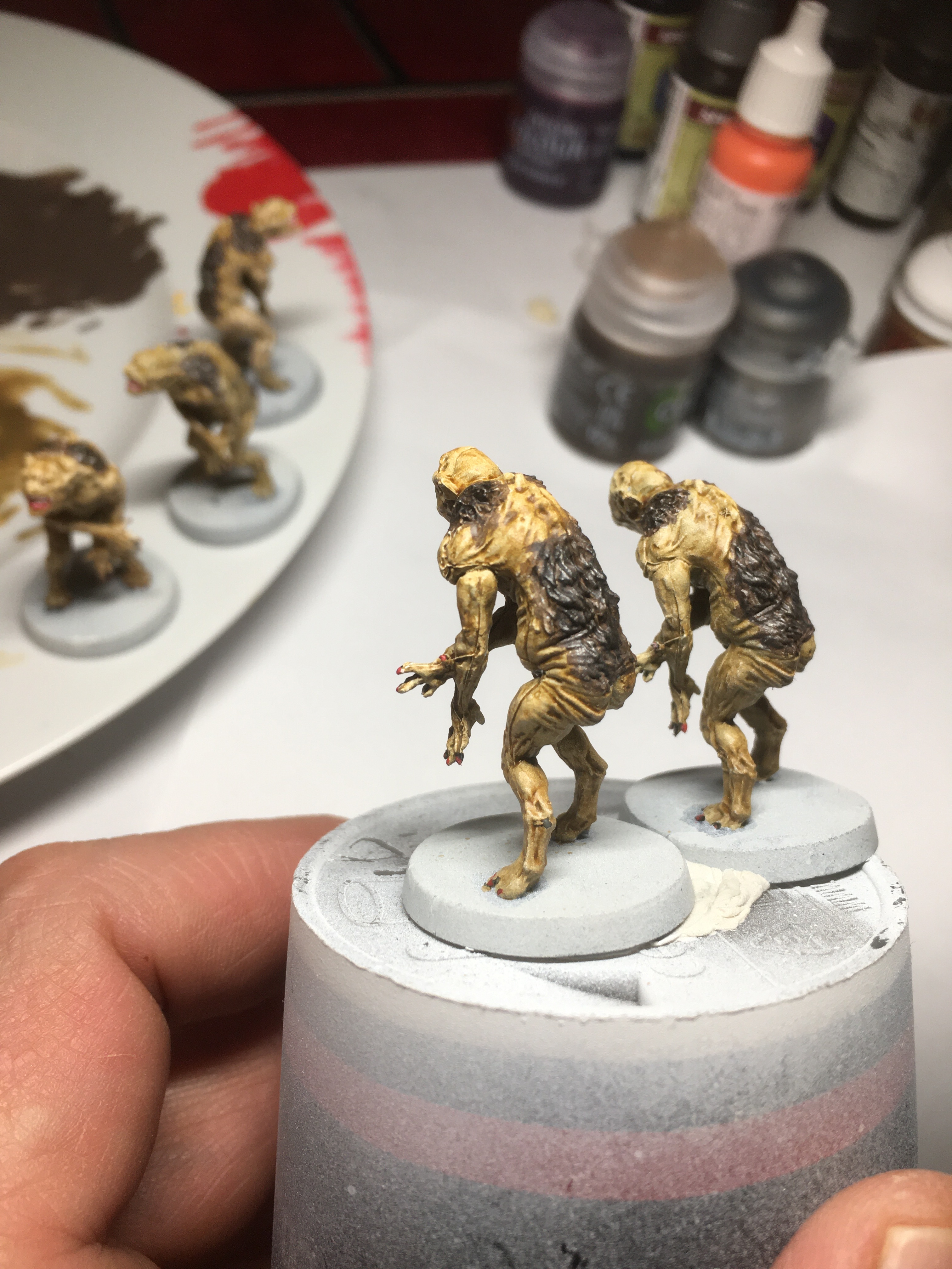 Ta peinture est propre, ça dépasse pas de partout. Comme dit par le chimpanzé ci dessus un éclaircissement par brossage à sec léger sur les arêtes d’une peinture un ton plus clair donnera bcp de relief et de profondeur. Comme dit le blanc os est généralement assez tt terrain. Bien essuyer le pinceau. Et si tu trouves ça trop marqué tu px tjs repasser un shade dilué.