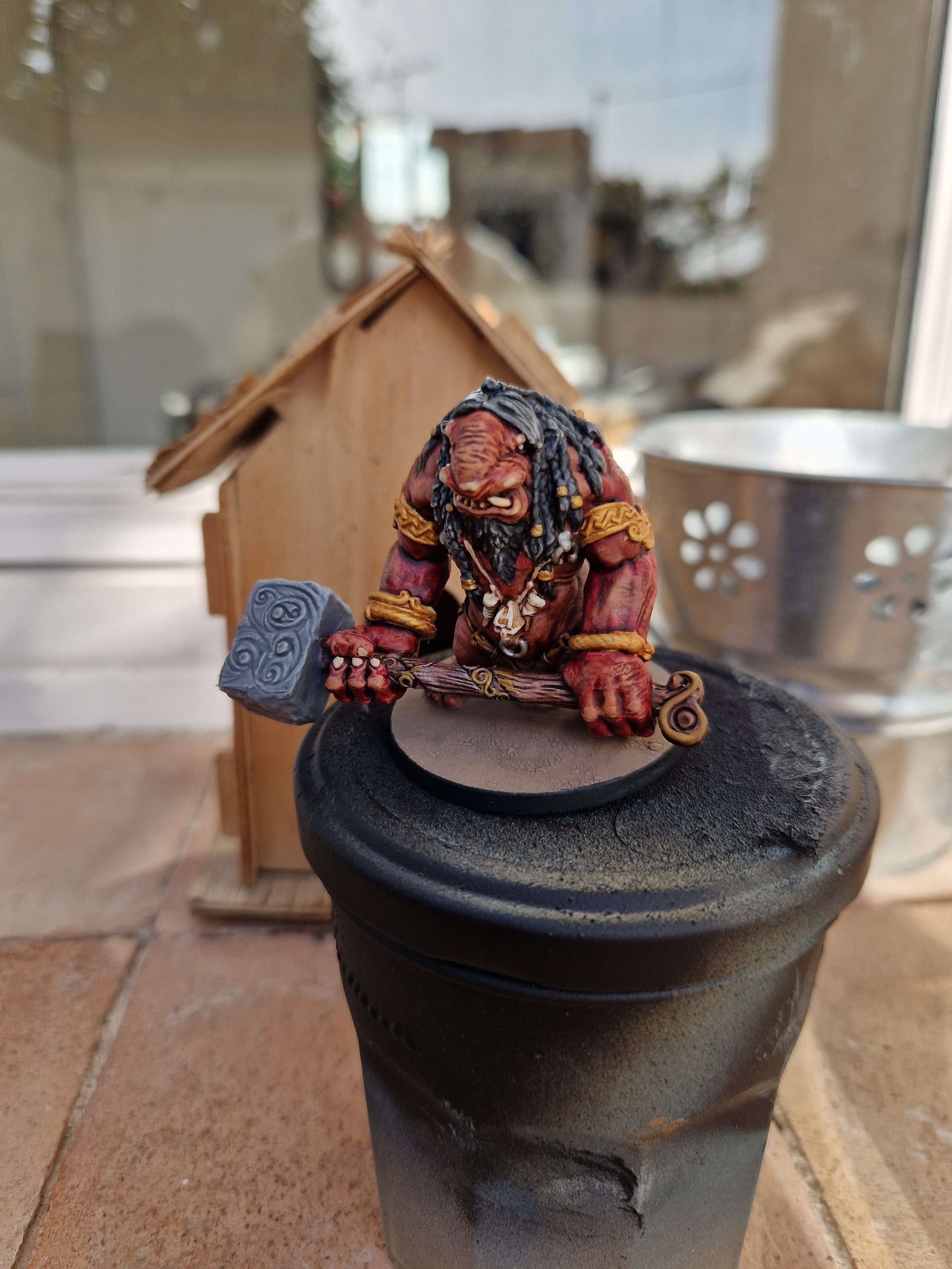 Et le Dwarf Skin se mélange bien à d’autres couleurs pour donner des tons de peau démoniaques. Genre, avec 2/3 Dwarf - 1/3 Plasma Red, j’ai obtenu ça en une passe sans retouches (sauf le pagne et les pointes/griffes/dents, bien sur) :