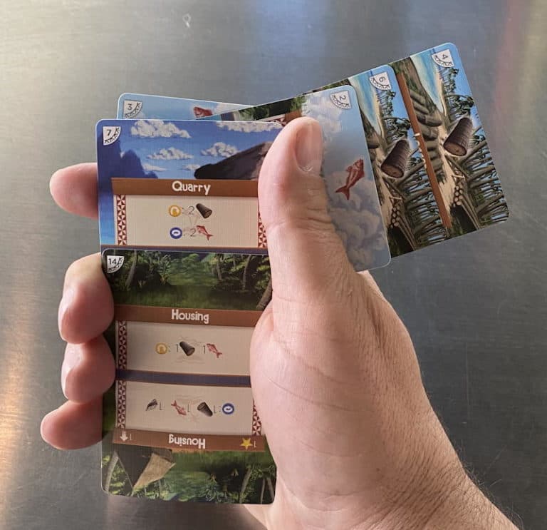 Léger twist sympa au niveau des mécaniques : on a plus un tour fixe mais des “feux qui deviennent rouge”. 3 feux rouge = fin de partie, mais on peut enlever des feux rouges en dépensant des ressources…