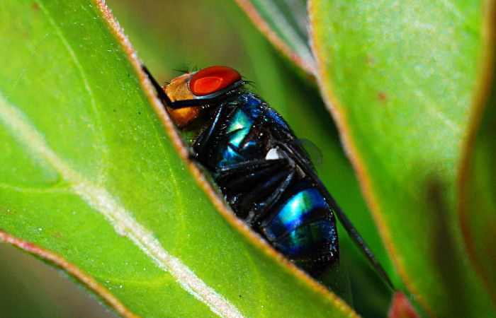 Concernant la saturation, il y avait un mega soleil ce jour là, pour preuve la refexion de lumiere sur l'abdomen de la mouche. j'aurai pu diminuer en post-prod, mais ce joli rouge des yeux... miam