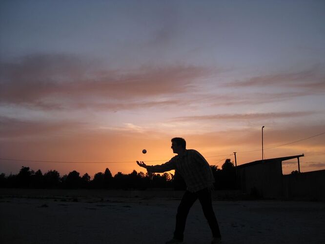 Voilà, on jouait à la pétanque dans le sud avec des potes, le Soleil se couche, je sors l’appareil, un pote est dans la mire, tant pis il est sur la photo