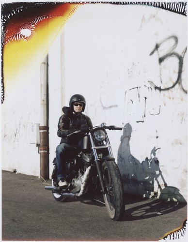 L’effet sur le bord de la photo n’est pas numérique. Il est dû au vent qui a commencé à arracher le blackslide avant la fin du développement du polaroïd.