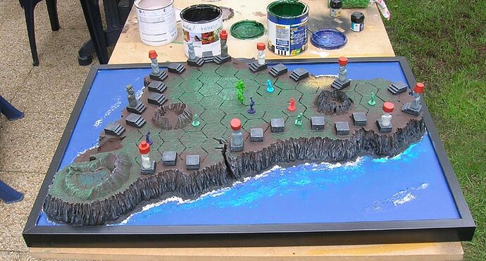 Initié, imaginé et commencé par Sylvain un copain, je l’ai rejoint pour un petit coup de main. Pour rappel, voici le plateau de jeu et là où nous en sommes. Ce n’est pas encore fini, il reste toutes les couleurs à “poser” et ajouter les détails.