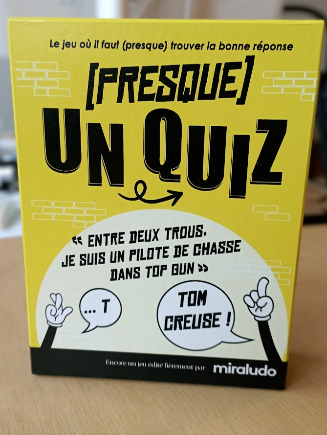 Je ne sors pas de jeu tous les 4 matins alors je viens faire un peu d’auto-promo pour ma prochaine création, annoncée en avant-première pour Cannes 2026 : Presque un Quiz. (oui il m’arrive de créer des jeux, entre deux traductions).