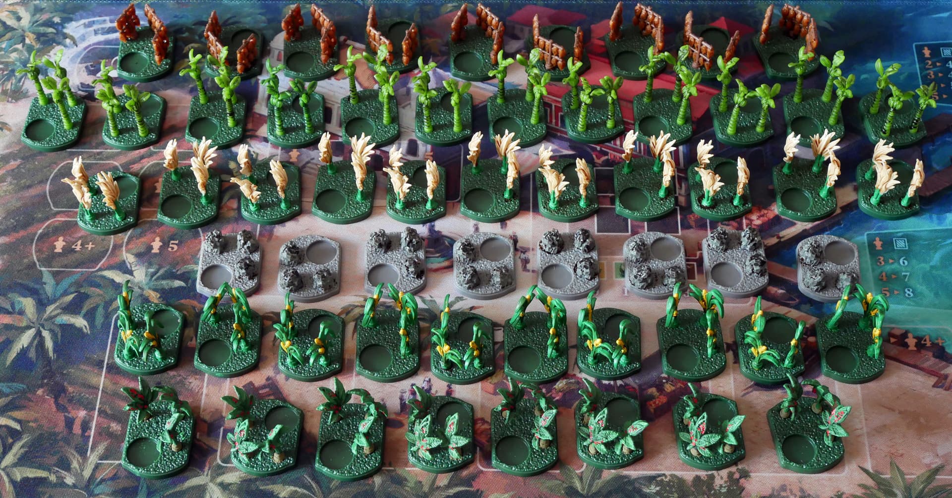 Une amie qui a achetée le full plastique me dit qu’elle place en décalées, en dessous des bâtiments, les tuiles acrylique, histoire de se repérer.
