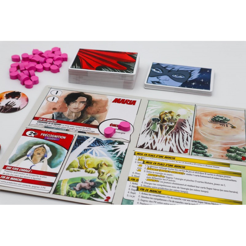 Un jeu de plis où chaque joueur va incarner un super héros qui monte en puissance. Avant chaque manche on va devoir choisir un pouvoir, ce qui va donner une asymétrie de plus en plus forte entre chaque joueur au fil du jeu.