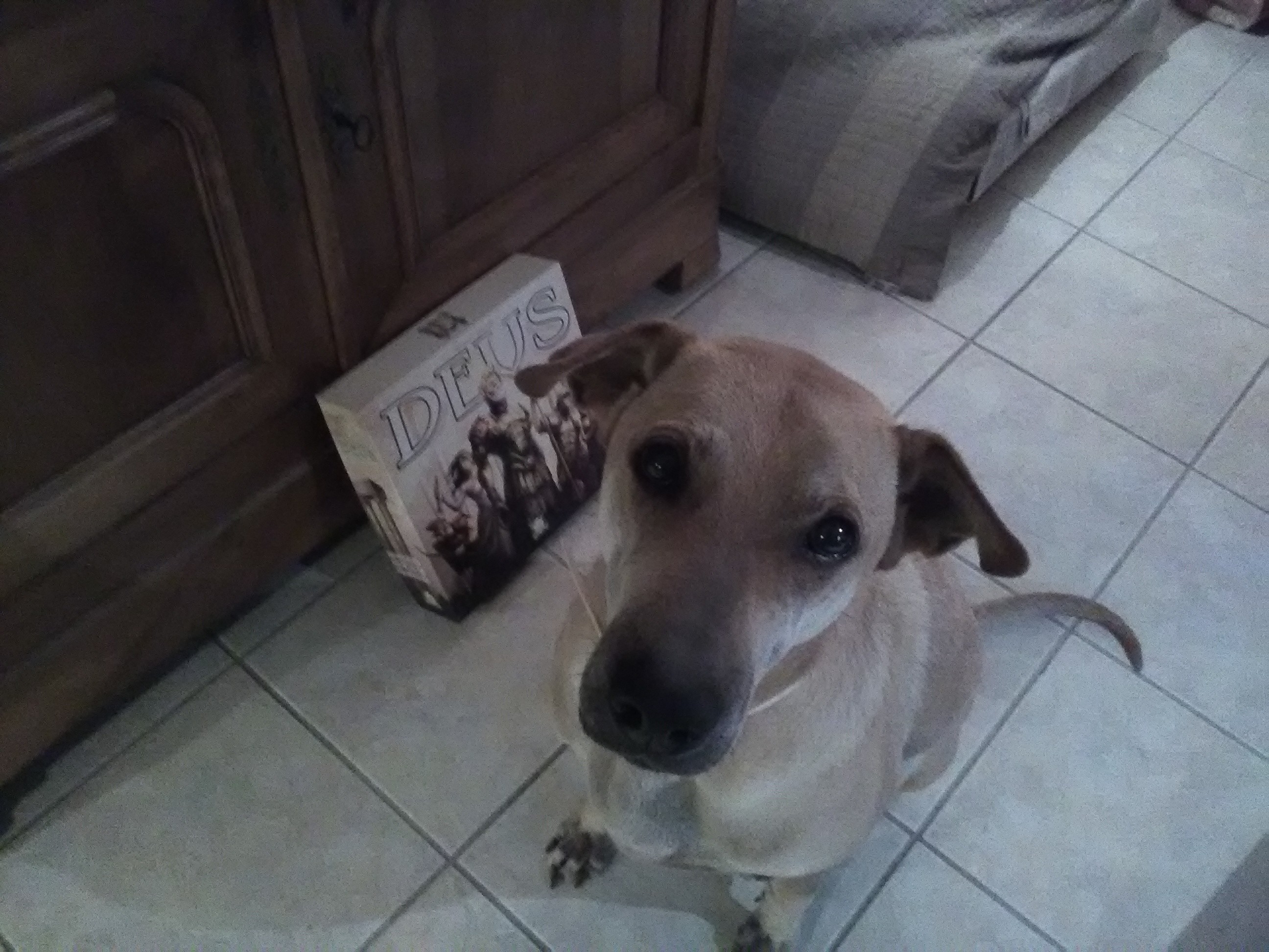 Nous avons tous des animaux (enfants, compagne ou compagnons, moustiques, blattes ou … plus qimplement chats (premiers animaux de compagnie en France), chiens et cochons nains (je sais, c’est rare, mais j’ai une affection particulière avec ces animaux !) … N’hésitez pas à mettre des photos de vos animaux avec vos jeux (ouverts pour les plus courageux !) ou fermés pour les pleutres … Je commence (dans la catogérie pleutre, voir double pleutre parcequ’il s’agit d’un super jeu mais dont je ne suis pas le plus grand fan et en plus la boite est fermée … ) …