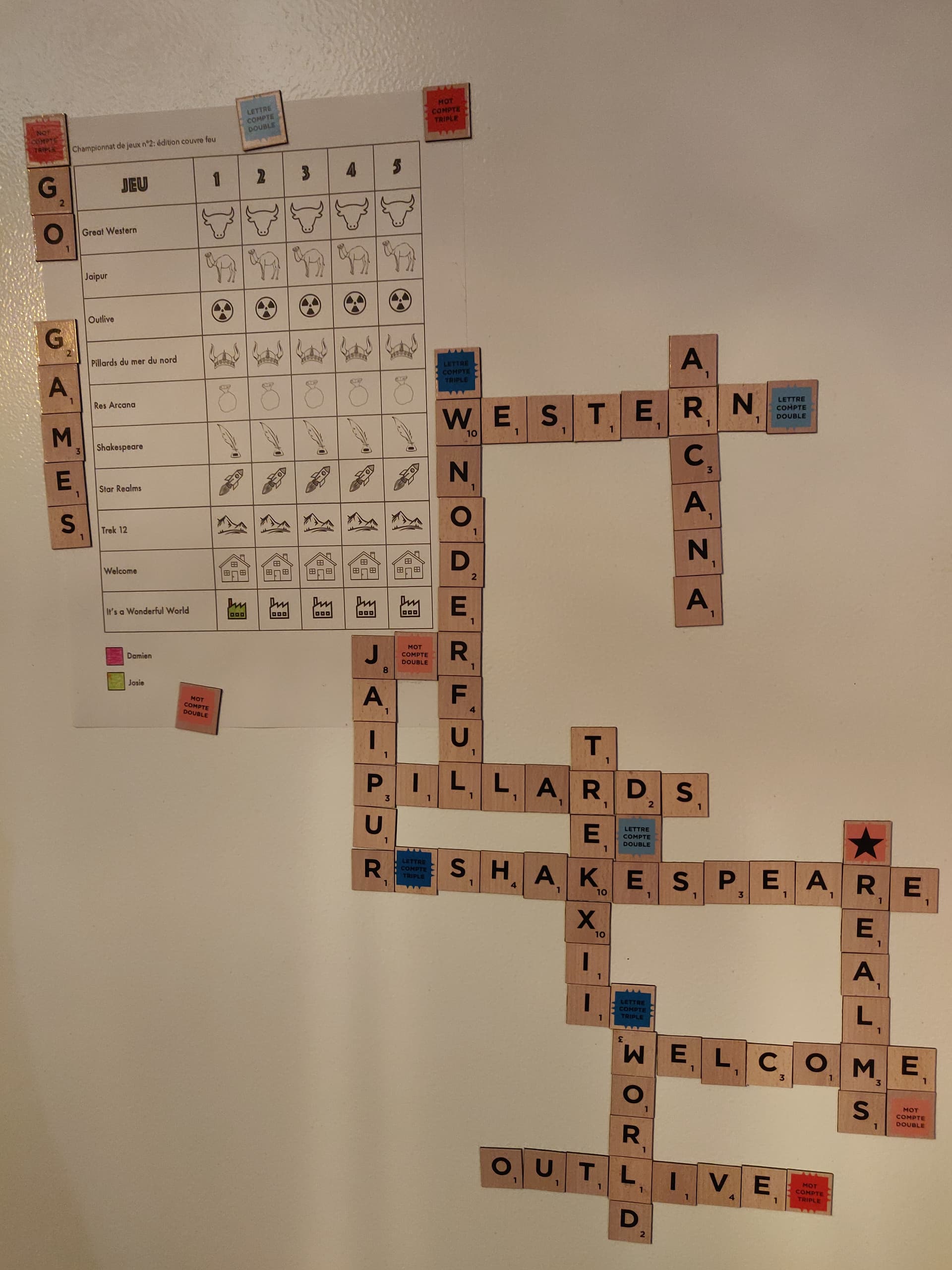 J’aime bien bananagrams. J’ai la version anglaise et française. Je me souviens encore de ma partie où j’ai enfin battu des américains avec ma grille.