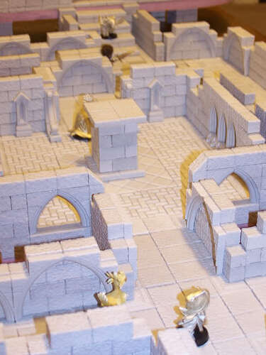 Alors sur tes trois exemples : -la première photo : très simple à faire, le sol est ultra simple, des petits carrés d’un peu moins d’un pouce, le tout collé sur un support, le polystyrène découpé et collé. peinture grise, brossage à sec un peu plus clair et voilà le travail. Ca va vite et ça rend bien, le plus facile/rapide à faire, surement ma solution pour le mien !