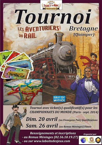 En accord avec DoW, nous vous proposons donc deux jours de rencontres des Aventuriers du Rail avec à la clé, des qualifications pour la finale nationale ainsi que de nombreux cadeaux.