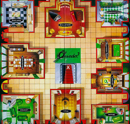 brunbrun dit:cluedo ca me chagrine parce que les pions semblent à cheval et non sur des cases (sauf si ils viennent d'être bousculé par le dé). mais le matériel semble correspondre, helas mon cluedo est chez mes parents...