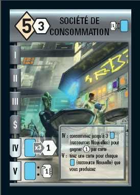 Un doute quand à l’utilisation de la carte “Société de consommation”. En production, le symbole indique qu’on pioche autant de carte qu’on produit de ressource nouvelle. Mais la carte “Société de consommation” permet-elle elle même de produire une ressource nouvelle (le symbole me le fait croire…)