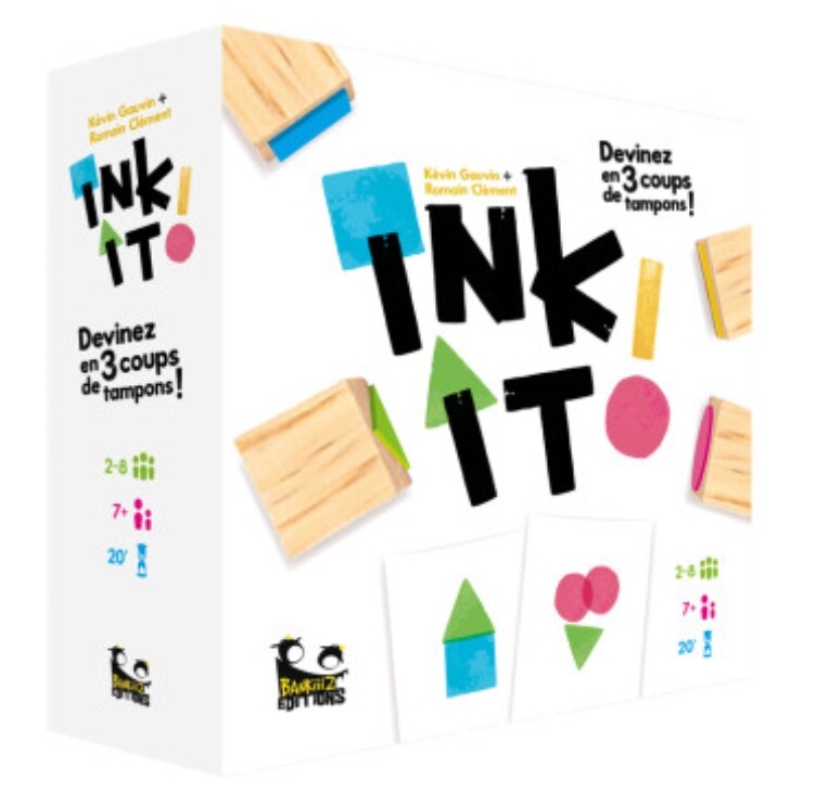 Ink it 5 manches autorisant de moins en moins de coups de tampon pour faire deviner un mot ou une expression. C’est collaboratif et il faut faire en sorte que le joueur actif associe chaque "dessin" à son mot/expression.