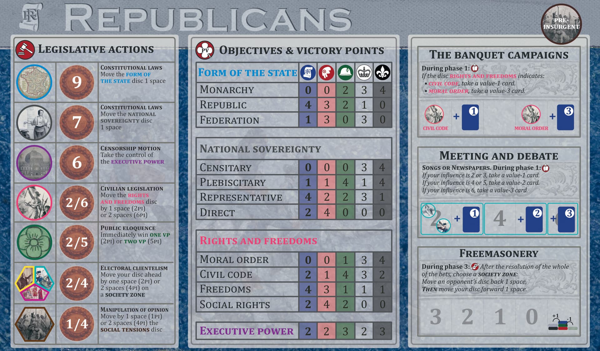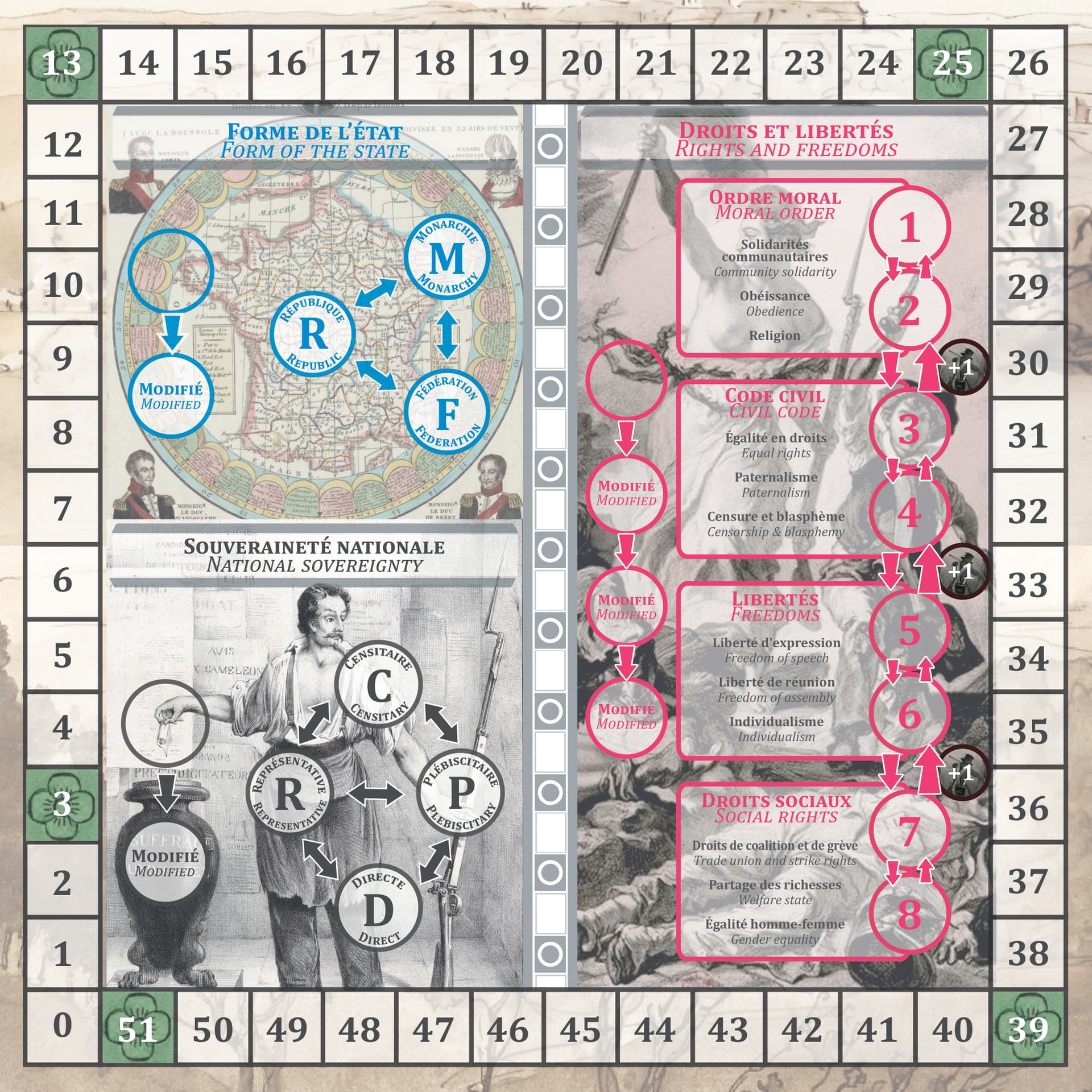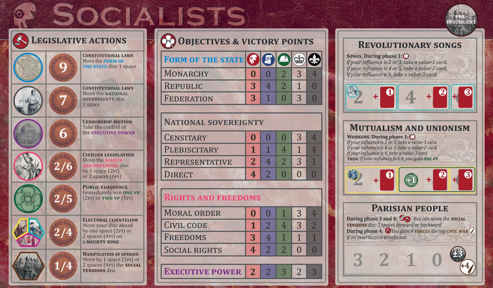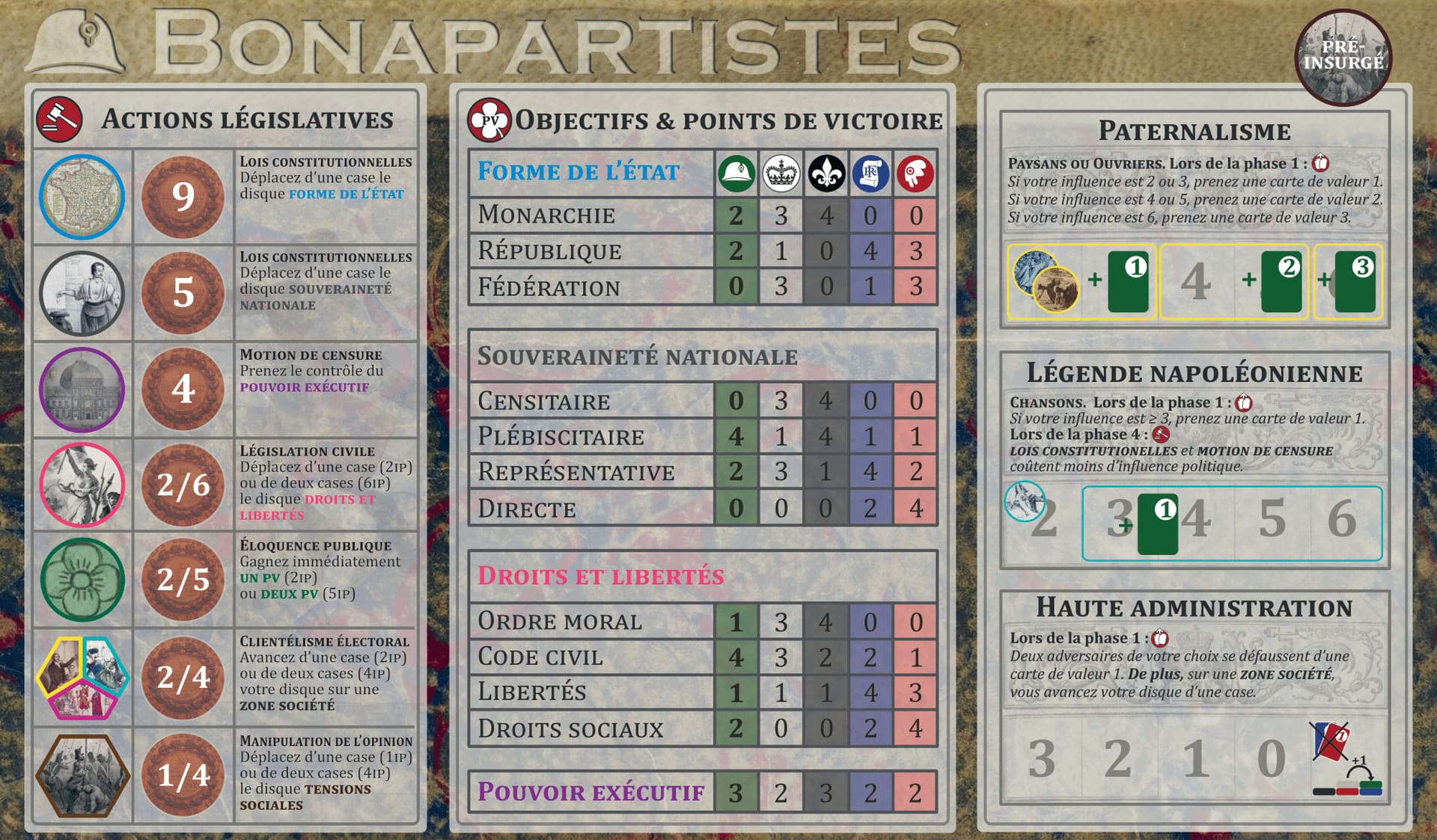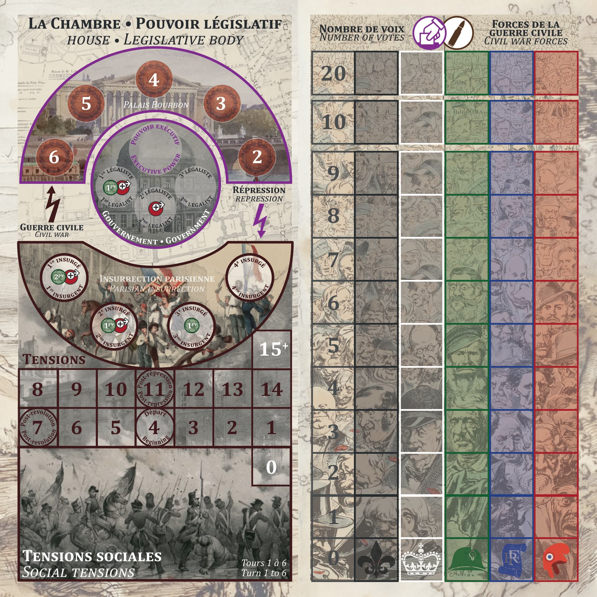 - Quelques micro équilibrages : modification d’1 atout de l’orléaniste, des positions de départ sur la presse et les chansons, plus 2-3 autres modifs anecdotiques)