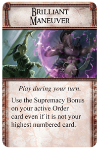 - saison suivante, jouer l’ordre moissonner avec la carte “Brilliant maneuver” permettant d’accéder au bonus de suprématie :
