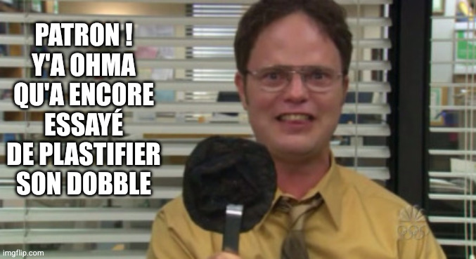 Ben oui, tu as bien compris, il plastifie ces cartes avec sa plastifieuse.