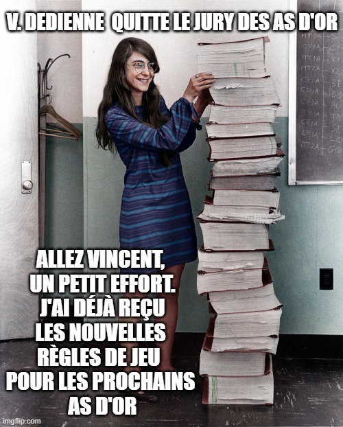 Il s’agit de Margaret Hamilton- responsable de l’équipe chargée du développement du logiciel embarqué utilisé par les missions Apollo - qui pose ici, à côté du code du logiciel de navigation qu’elle et son équipe, du MIT Draper Lab, ont produit pour le programme Apollo. Sans elle, Apollo 11 n’aurait jamais aluni et y’en a encore qui pense que les femmes ne sont bonnes qu’à faire la popotte …
