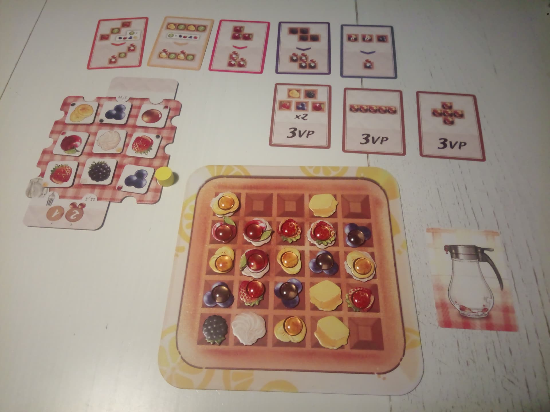 Et puis comme j’aime bien mon papa mais que moi aussi j’ai du travail. J’ai dit à mon papa qui veut tout le temps jouer que j’avais tout plein de devoirs. Et puis il a joué tout seul à La Route du Verre et il a découvert Waffle Time