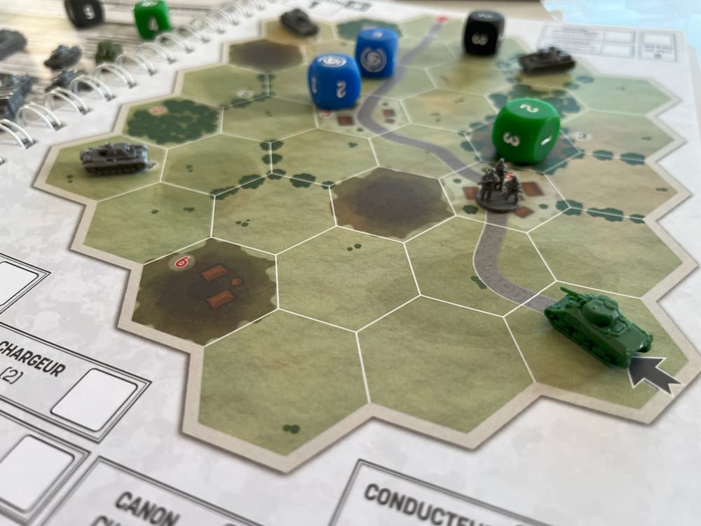 Le nombre de dés est suffisant pour éviter des effets de bord trop punitifs, sachant que tu peux choisir ton action si tu fais un double. La probabilité que tu ne puisses pas tirer pendant plusieurs tours est donc quasiment inexistantes sauf en situation “critique”, coincé dans la boue avec ton commandant mort par exemple, mais ce qui est plutôt logique pour le coup. Et d’ailleurs, l’optimisation de ton pool de dés est un enjeu important car il dépend, entre autre, du terrain que tu occupes. Il faut donc bien réfléchir à ta position de fin de tour pour maximiser tes chances au tour suivant.
