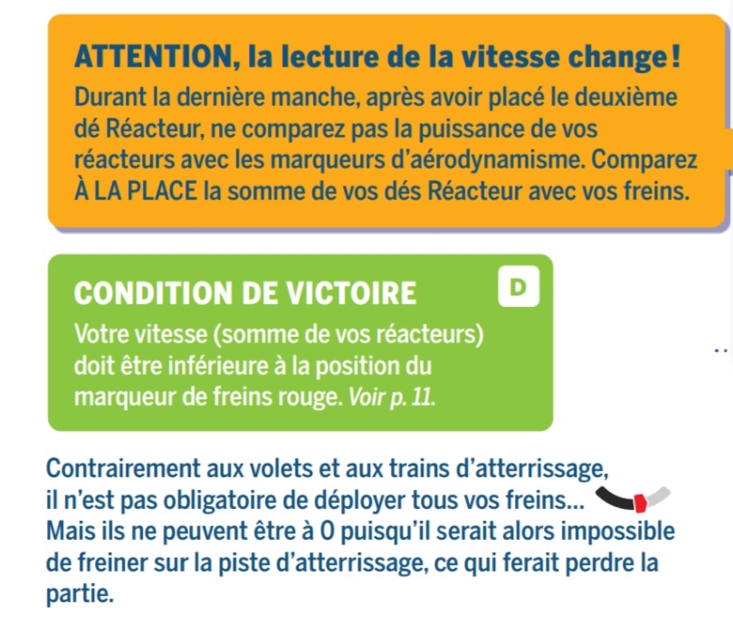 Cependant, en relisant la partie “dernière manche”, il est bien indiqué que la somme des reacteurs doit être inférieure à la position du marqueur de frein rouge. Or si il n’y a pas de dé, il n’y a pas de chiffre. On peut donc considérer qu’un dé est obligatoire.