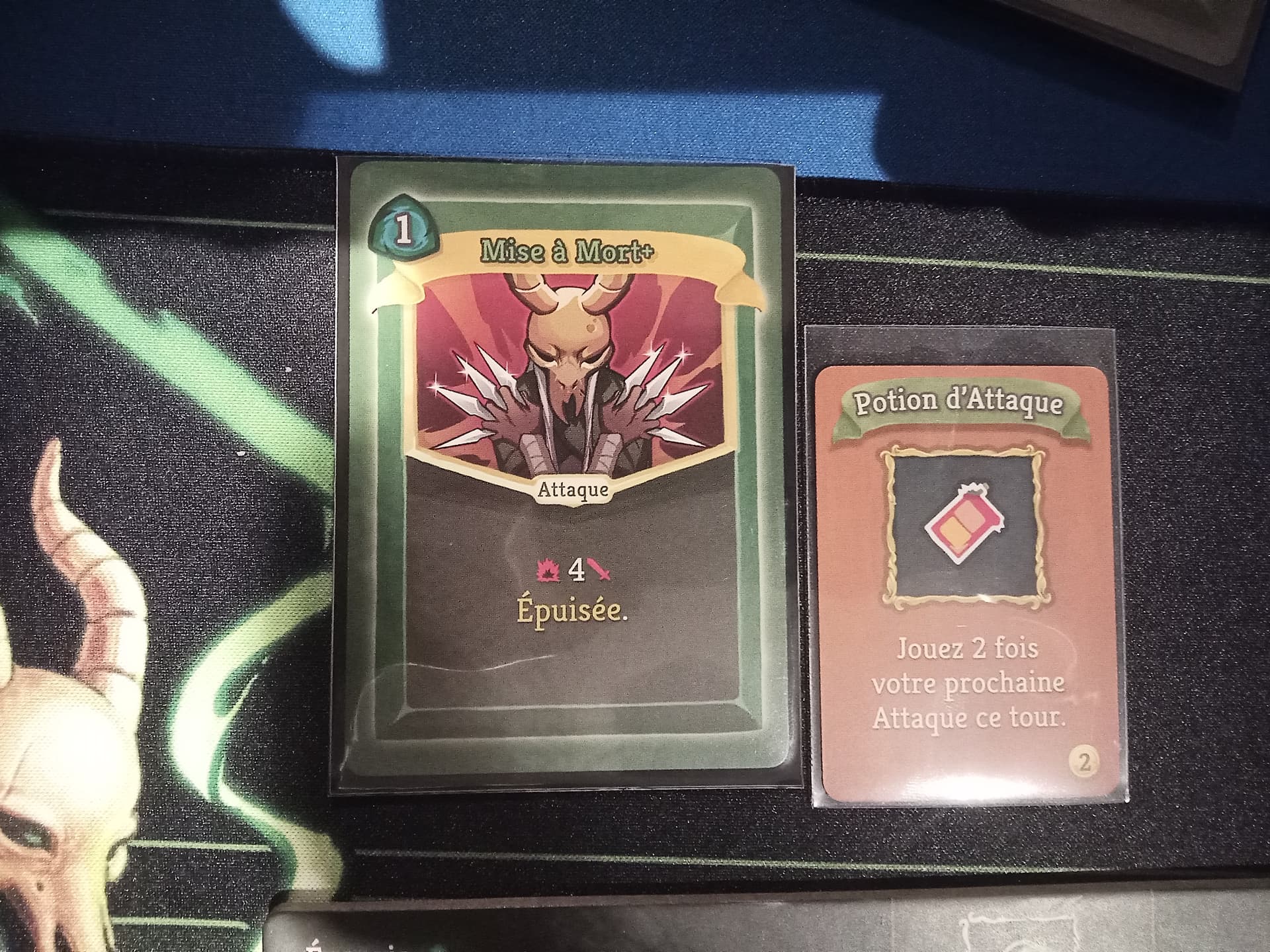 Est ce que je peux combiner ces 2 cartes ? Ou l’effet de la potion d’attaque ne s’applique pas car la carte Mise a mort est épuisée la première fois ?