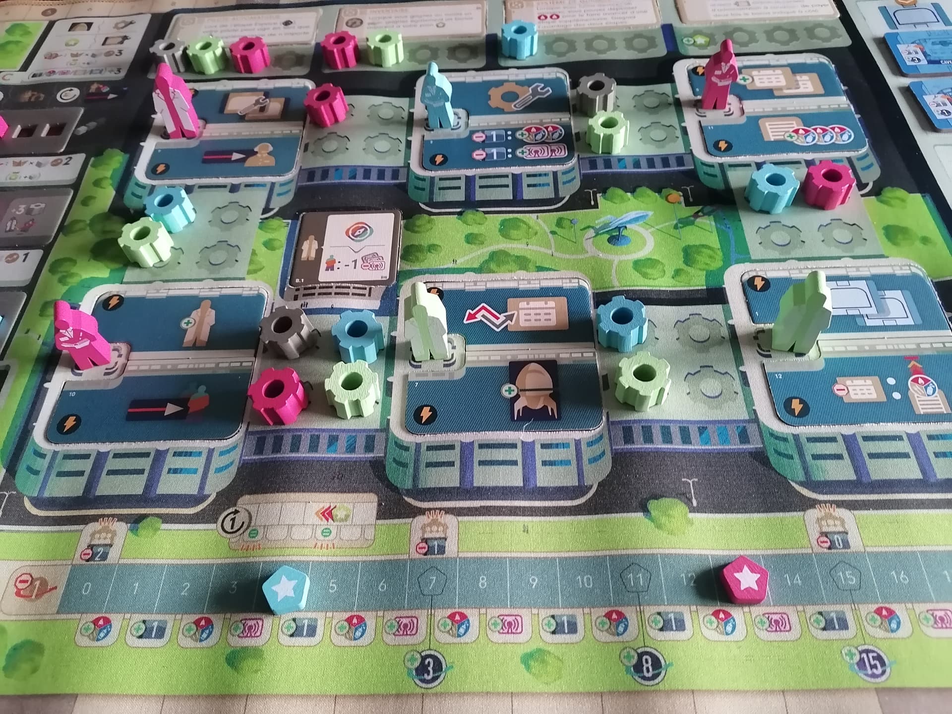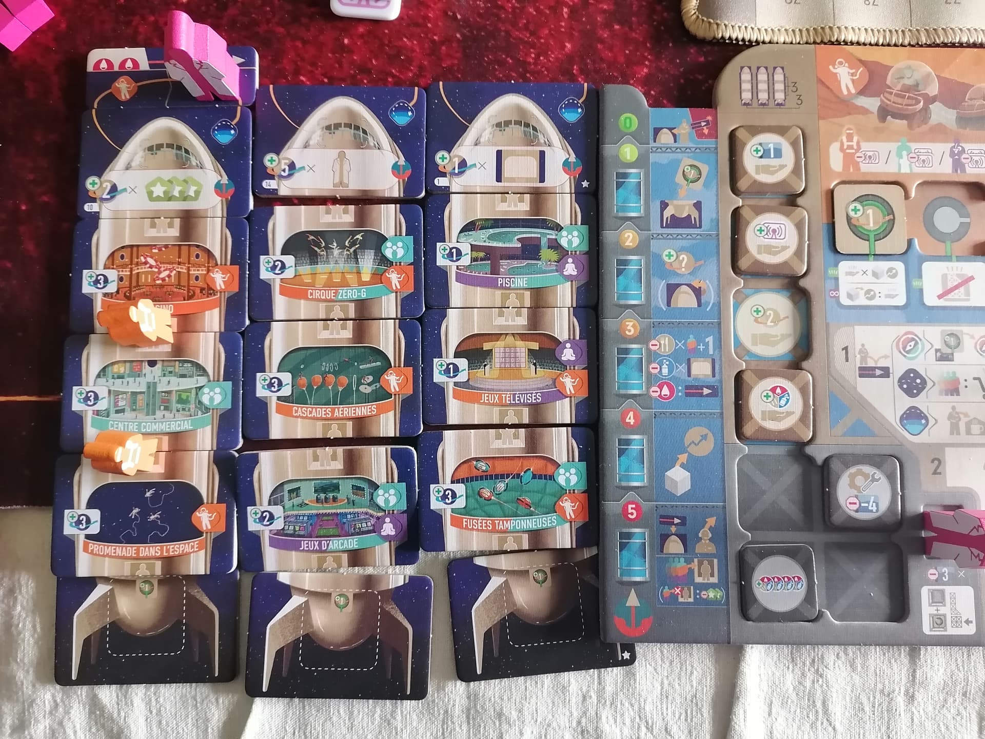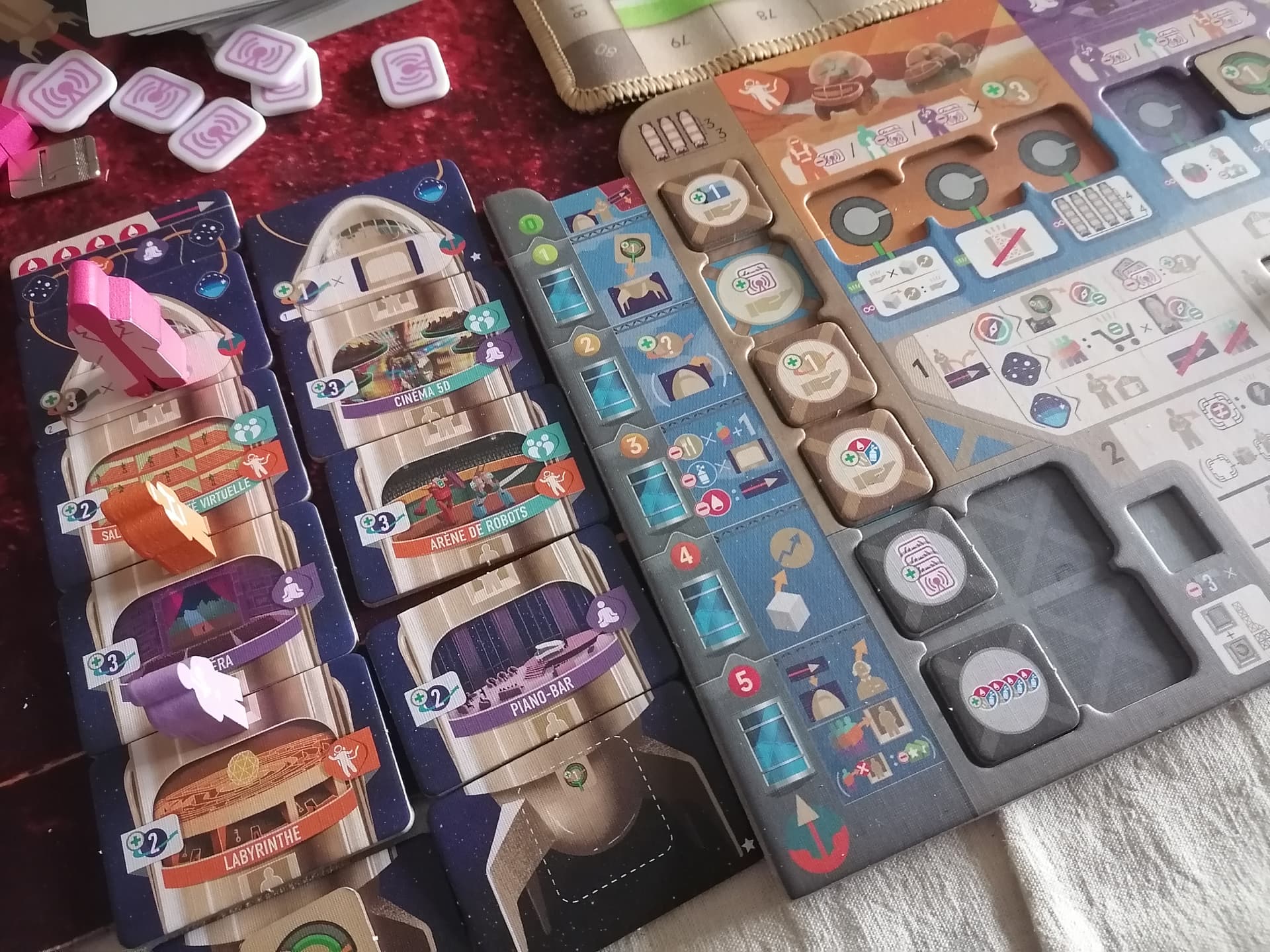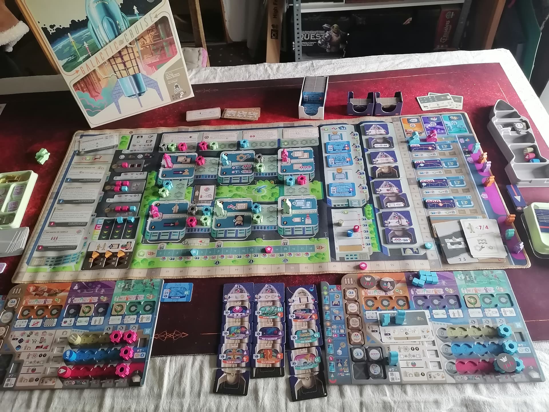 C’est le moins le bazar que ça en a l’air, mais j’avais déjà rangé les cubes et les jetons avant de prendre la photo.