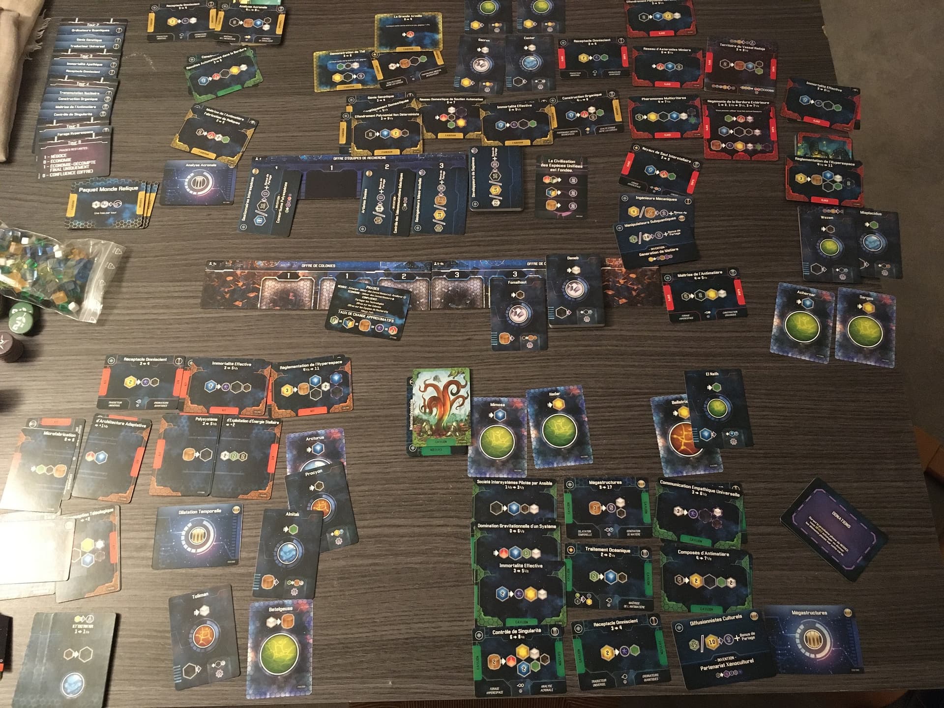 Une partie de Confluence sidérale week-end dernier. Oui oui, le jeu de négociation en temps réel avec factions asymétriques qui demande minimum quatre joueurs ![]()