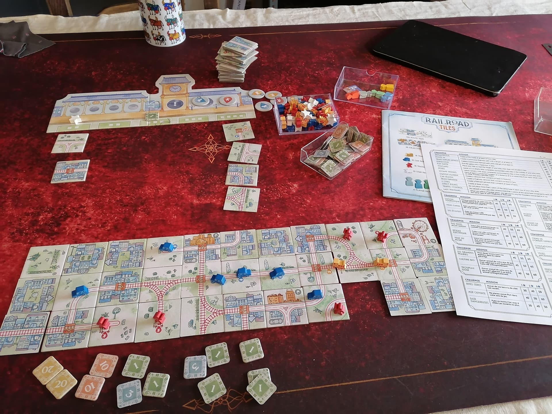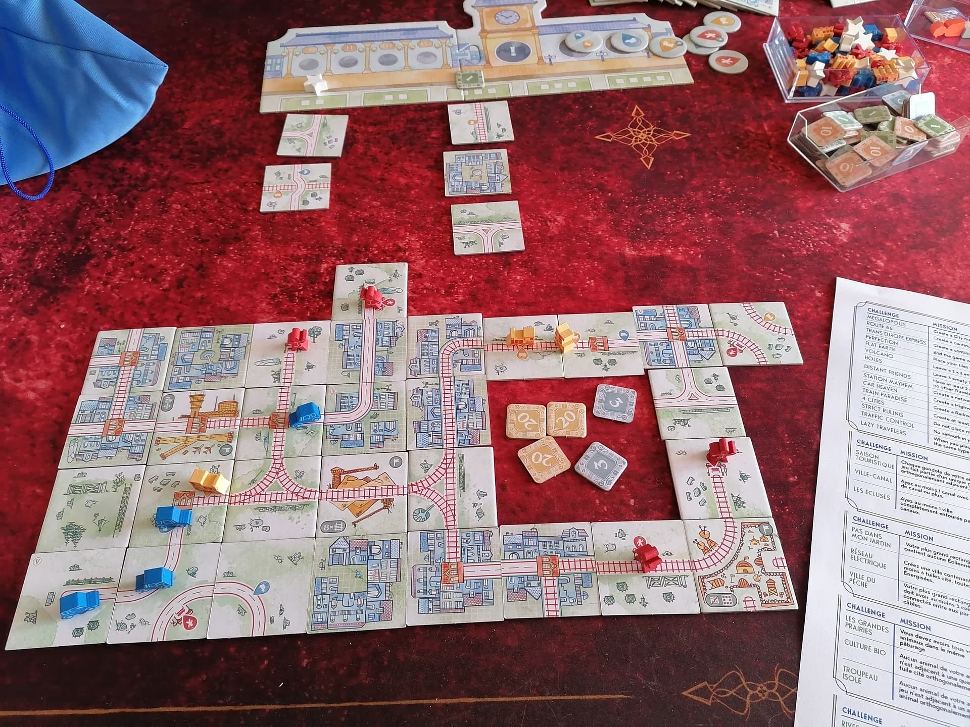 Kanal : 1er essai du deck B, y a des gros combos à faire, les nouveaux effets sont sympas (miam ces voies et ponts “gratuits” qui permettent de jouissives réactions en chaîne, miam la valorisation de l’acier avec divers bâtiments, je me suis retrouvé à acheter pour 18 balles de ressources pour refaire le plein et scorer fort…), je termine à 173 points après 1h30 de jeu (je prend le temps de la réflexion en solo), j’ai l’impression que ça fait un peu beaucoup, j’en viens à me demander si je n’ai pas fait une manche en trop avec la fatigue du soir…