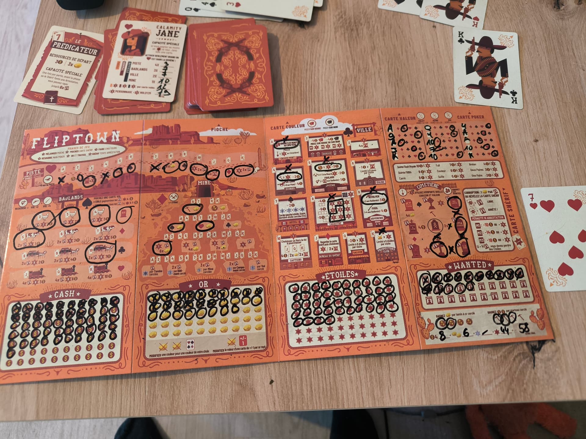 Fliptown en normal. Je me suis fait éclater par Calamity Jane. J’adore ce jeu même si j’y joue pas souvent, d’où le score pourrie😅.
