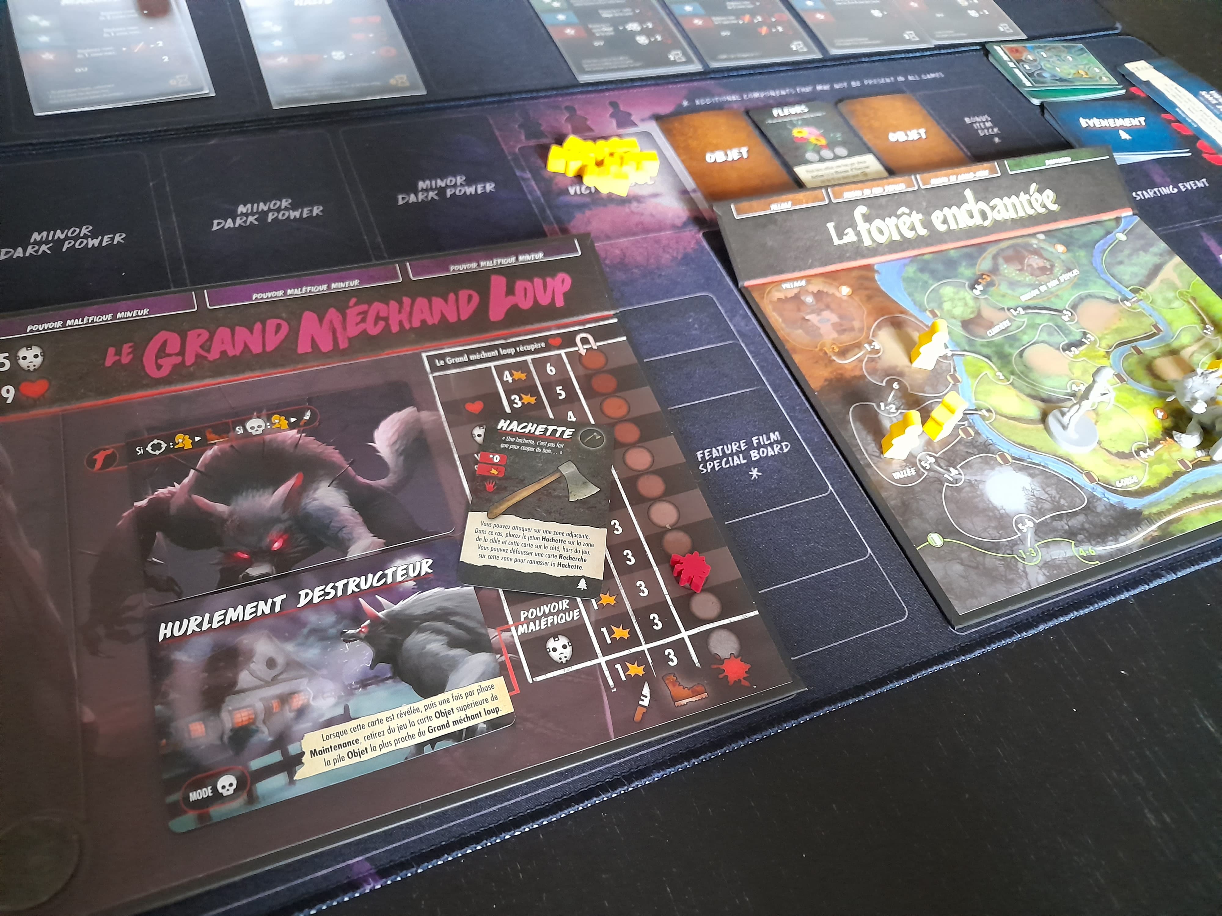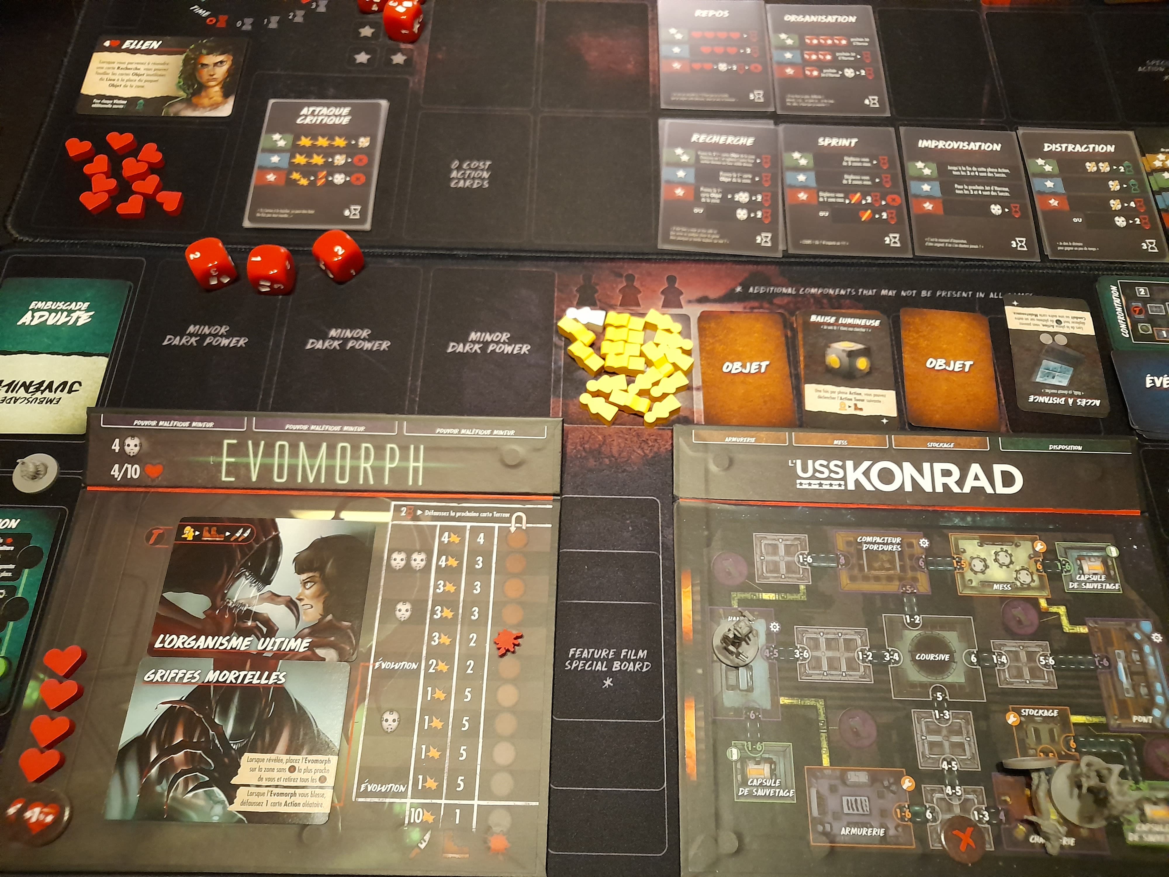 J’en avais déjà 3 parties aux compteur (de cette extension), et je commençais doucement à arriver à la conclusion que je la trouvais un peu bof : le thème ne m’accroche pas trop, que des victoires jusque là (donc un sentiment de challenge à relever pas trop là) et beaucoup de règles à mon goût (j’ai même arrêté une des parties précédentes parce que je me suis perdu dans les règles et que sur le moment ça m’a saoulé). Pas qu’elle soit mauvaise, non, mais qu’une autre m’aurait peut-être plus parlé.