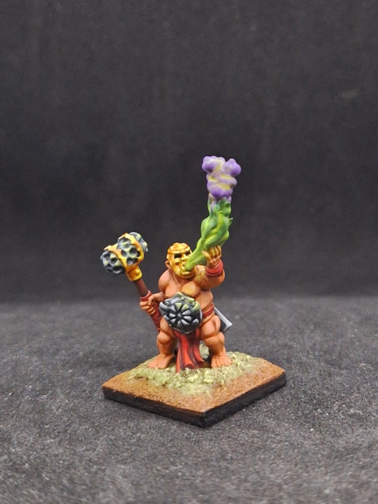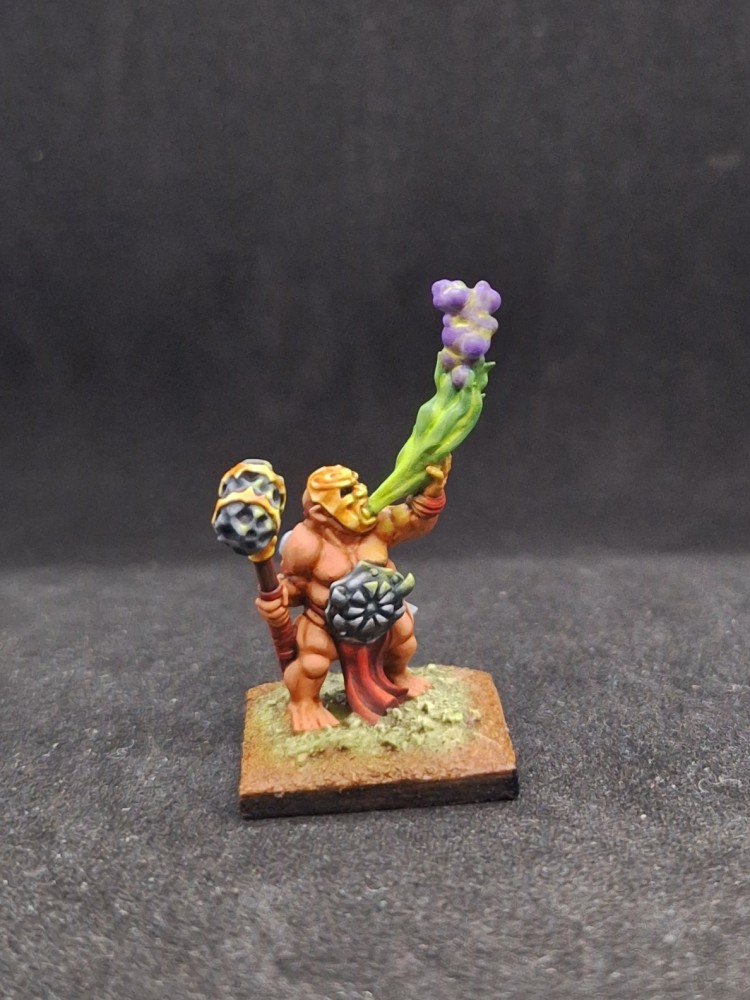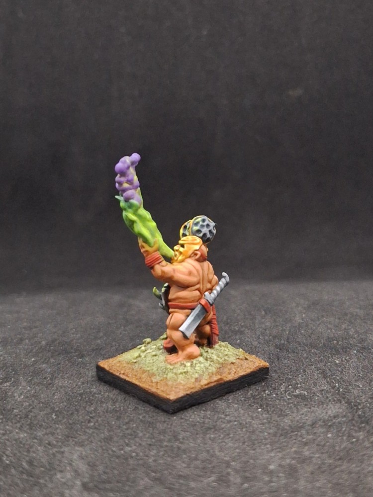 Vexé par cette manoeuvre surprise, Félicien lance lui un Drain de Vie sur un arbalétrier qui s’était mis en position et le tue sur le champ grâce à un gros jet de dés ! Le premier sang a ainsi coulé. Téméraire mais pas fou non plus (malgré son look discutable…), Félicien avance vers le centre du champ de bataille bien à l’abri de ses deux Mange-Mânes…