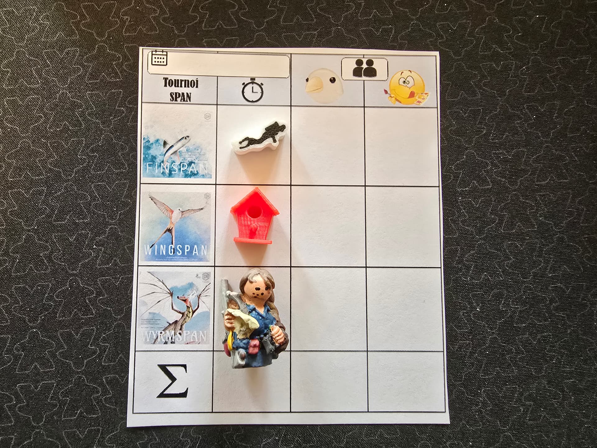 ) s’affrontent successivement sur les trois jeux de la série Span : Finspan, Wingspan et Wyrmspan.
