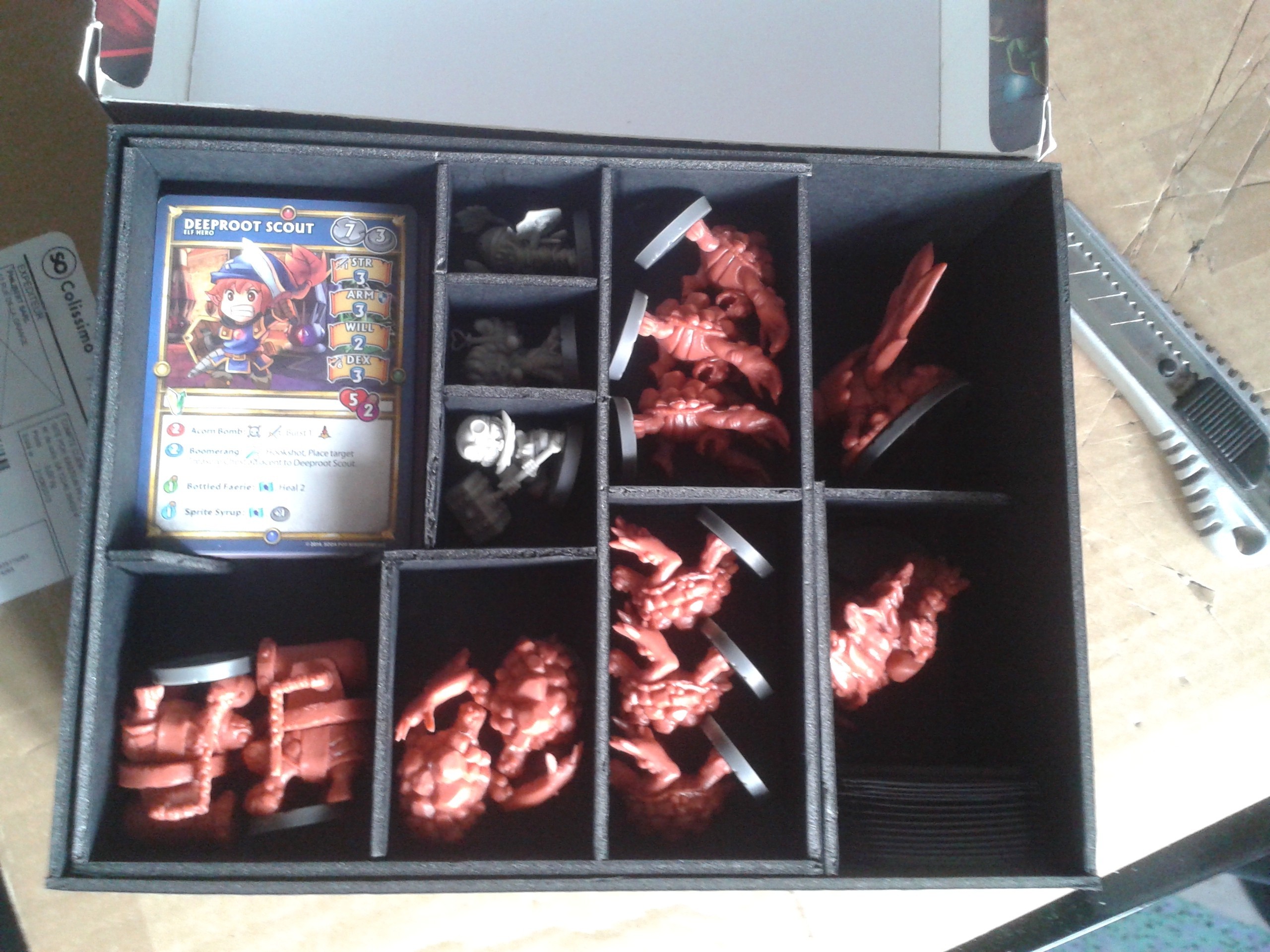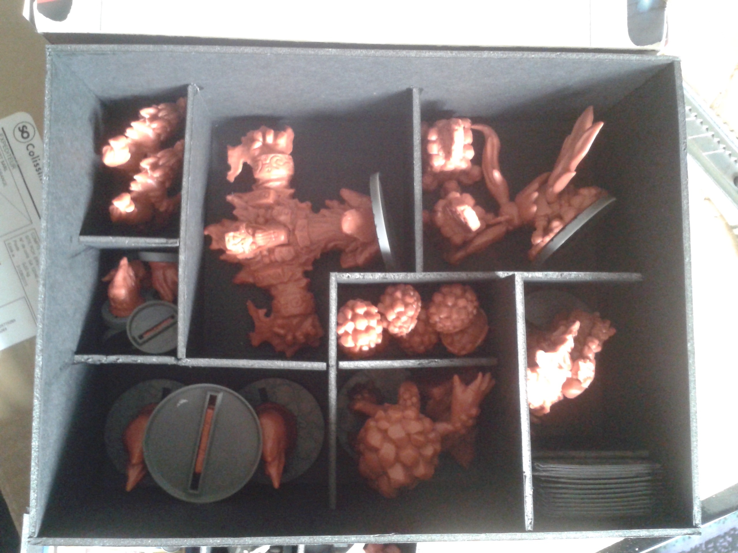 Et parce que j’en avais marre que mes figurines CoR se balladent/jouent à twister dans leur box d’origine j’ai décider de la tuner un peu. Je souhaitais garder les dimensions originelles pour garder l’emballage externe. J’ai presque réussi. Juste la hauteur qui dépasse du coup j’ai modifié un peu le système d’ouverture (ici le “couvercle” est pas encore collé définitivement)