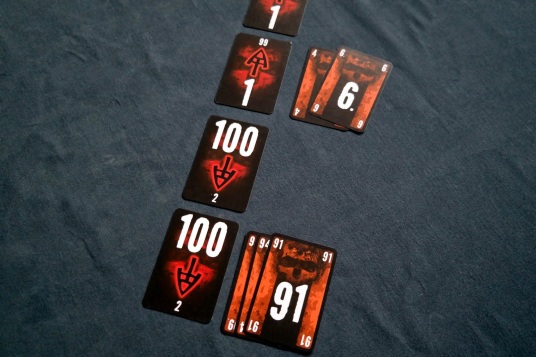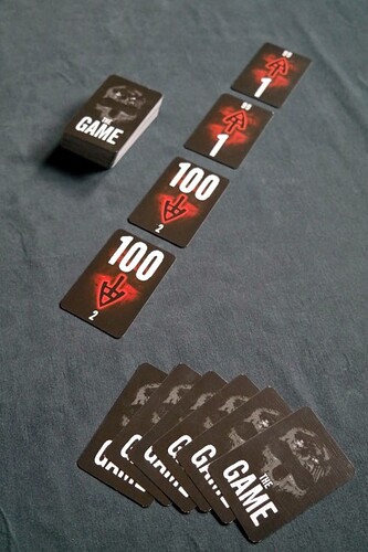Oui, enfin c’est quand même intéressant cette histoire de +/- 10 sur les paquets et le fait de ne pas voir ce qui a déjà été joué sur un paquet. Imaginons la situation suivante : le paquet ascendant montre actuellement le 92. J’ai en main le 93 et le 95. En théorie, il serait préférable de ne jouer d’abord que le 93. Mais si je me rapelle que le 83 a déjá été joué et que le 85 n’est pas encore sorti, ça change potentiellement grandement la donne.