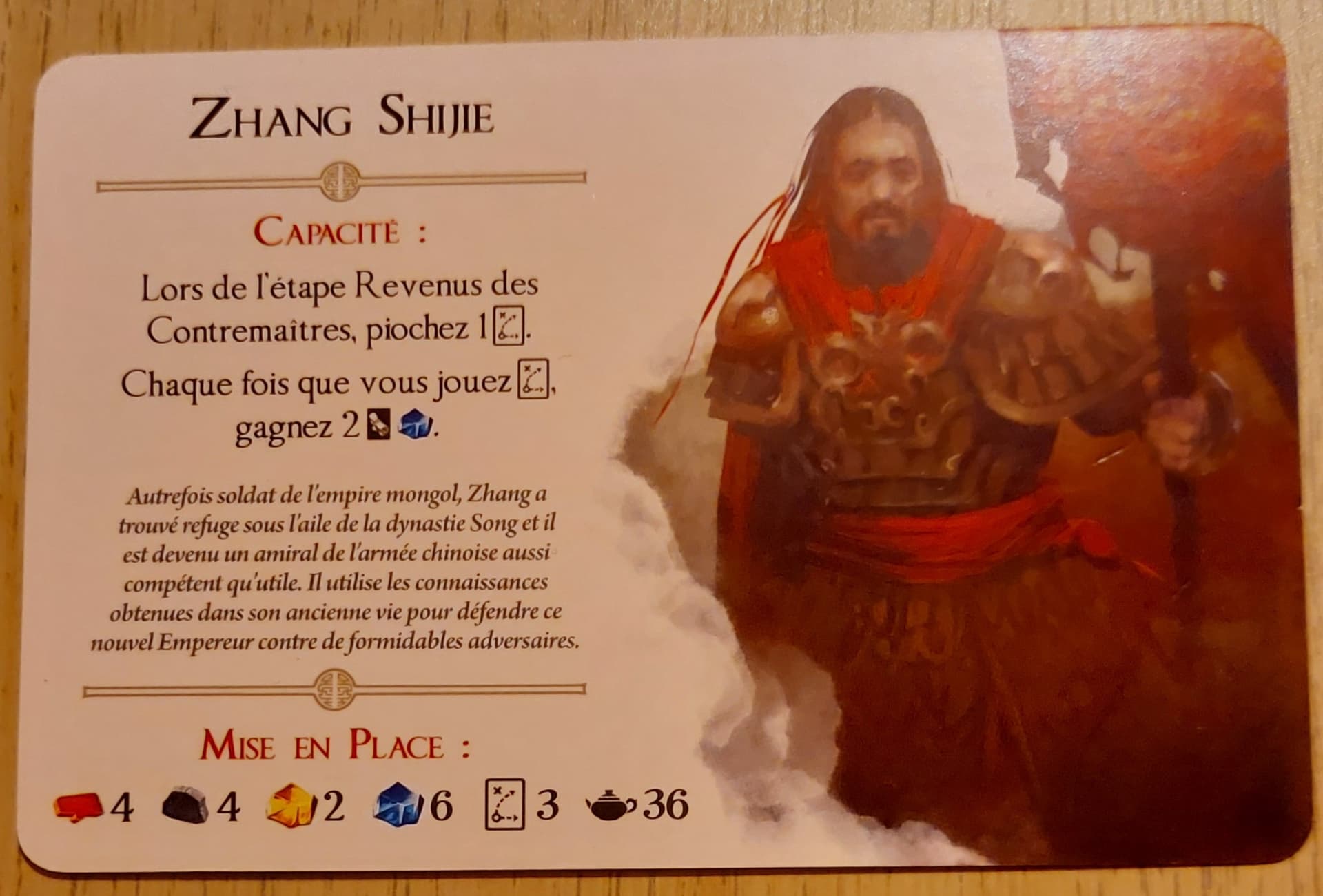 J’ai du coup une petite question pour les aficionados qui participent à ce fil: comment jouez-vous le général Zhang Shijie ? Avec la règle française qui lui fait gagner 2 chis/assistant “noir” à chaque fois qu’on joue une carte tactique ou 2 honneurs/assistant “noir” comme sur la carte en anglais ?