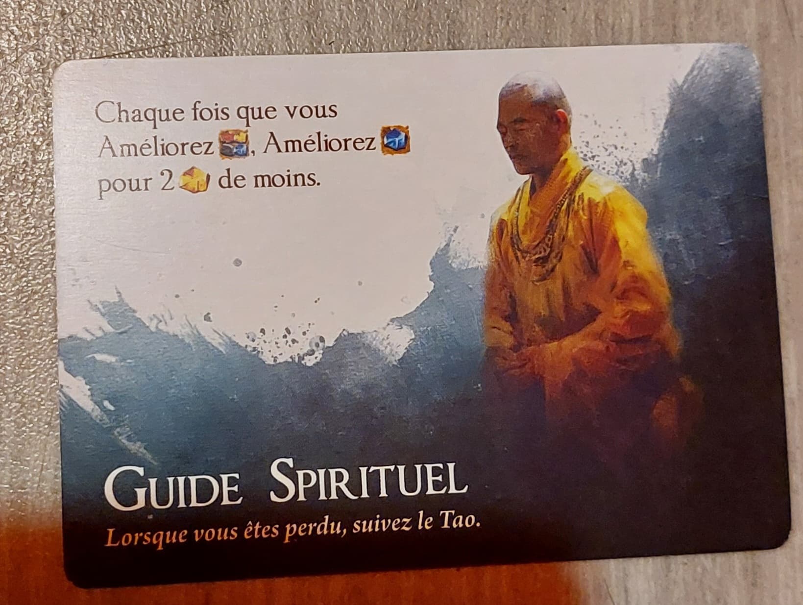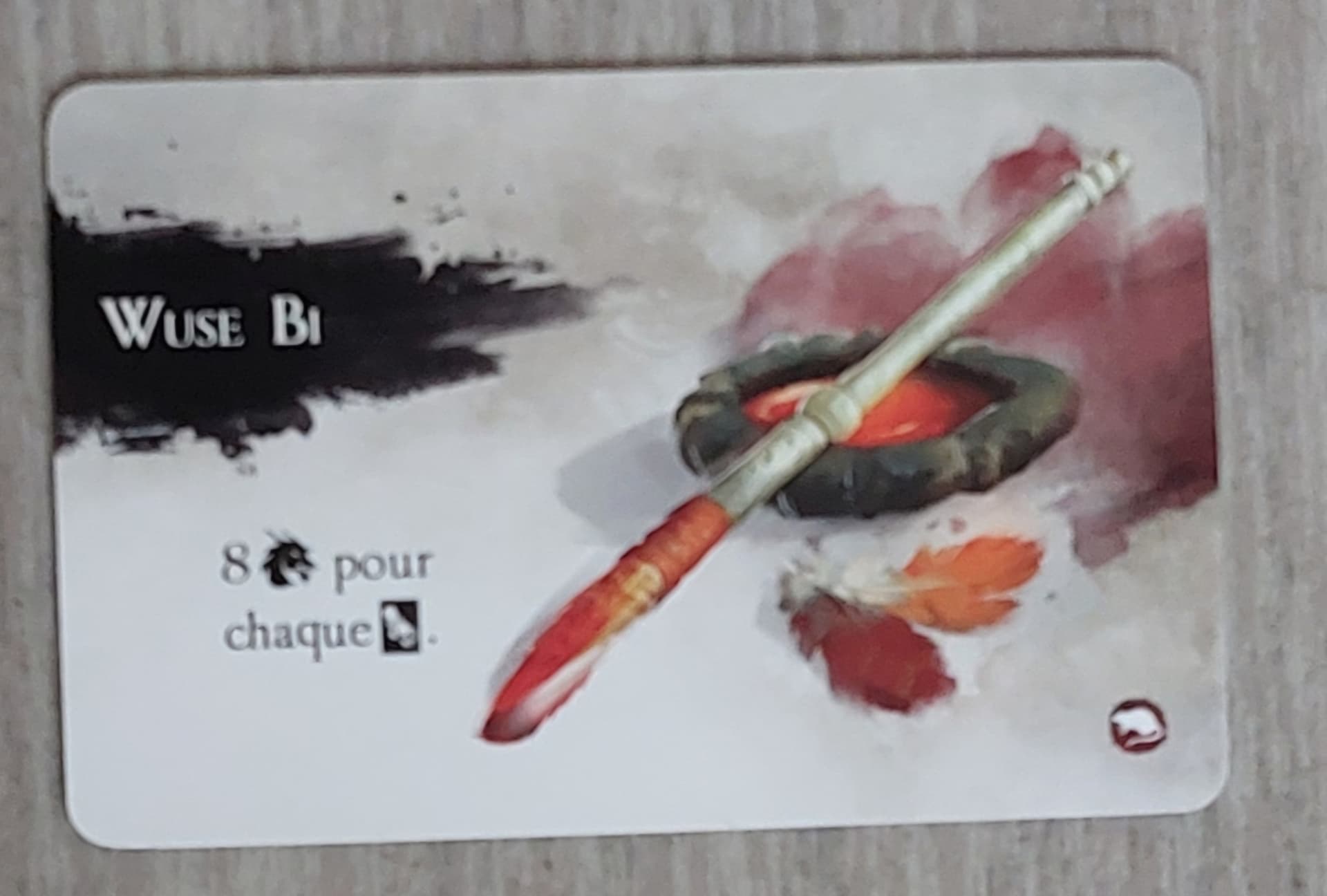l’ordre du thé m’a paru facile à contrôler : une seule carte Stratégie de Qin Jiushao lui fait prendre le “1er joueur” donc pas trop de concurrence à ce niveau non plus… mais ça me paraît important de reprendre le 1er joueur dès que possible car sinon on perd du contrôle sur le Clan du Roseau, on peut se faire griller la politesse sur l’utilisation des ressources offertes par le Clan du Roseau, se faire surprendre par Qin Jiushao qui va par exemple remplir un lieu ou terminer une horde sur laquelle on avait des projets avant nous, etc…