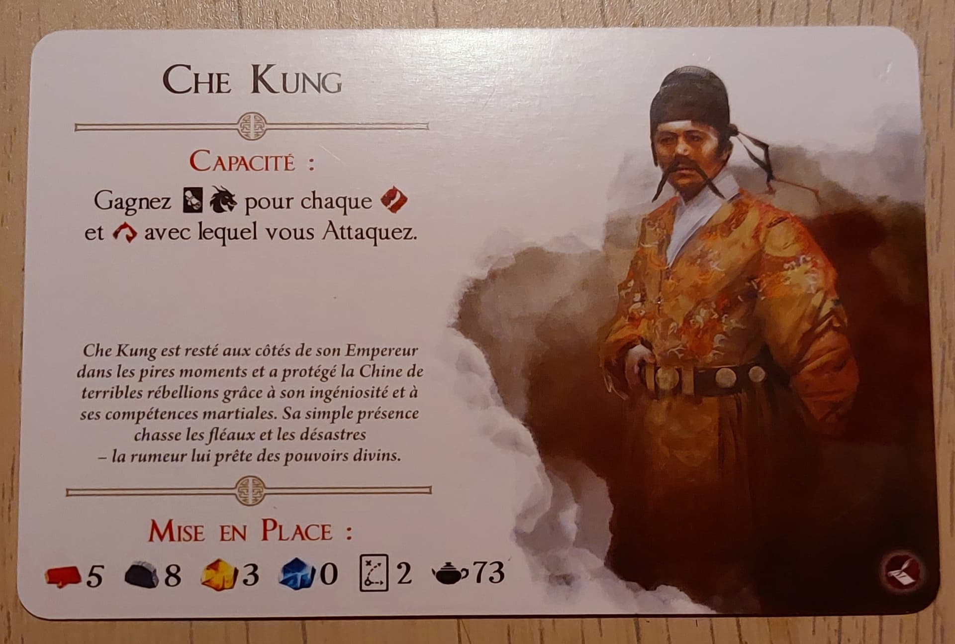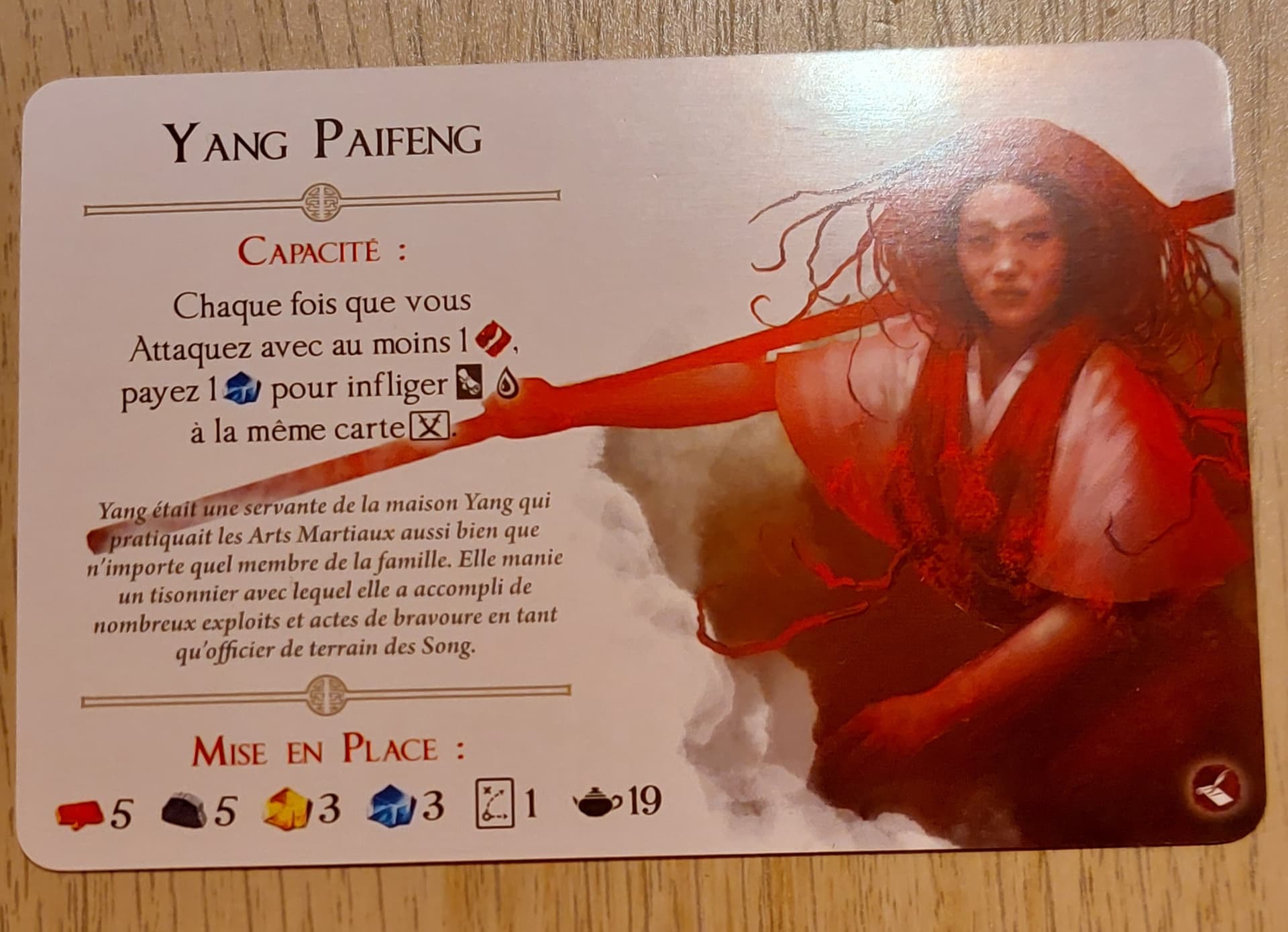 Ceci étant dit, tu as raison. Il y a semble-t-il une erreur pour l’impression VF (j’ai la VF…). Il semblerait logique qu’il gagne 2 points d’honneur/assistant comme sur la VO ne serait-ce que pour ne pas faire trop directement doublon avec Han Shizhong. Je le jouerai donc comme dans la VO. Merci!