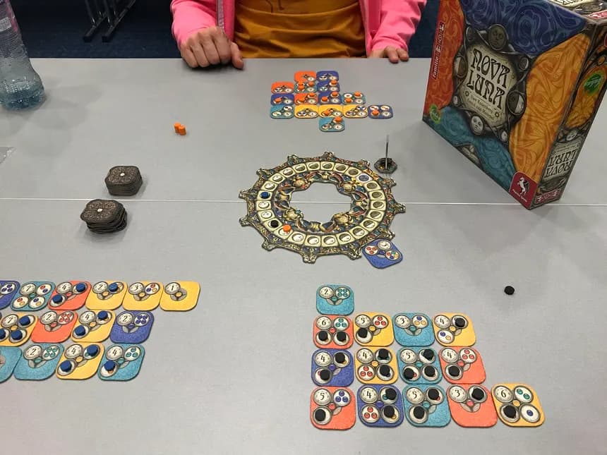 Je trouve ça finalement plutôt bien qu’on puisse fait ça (copier) dans le monde des jeux. Nova Luna est un jeu sympa et facile à expliquer, j’ai un peu arrêté d’y jouer car il a un côté un peu trop casse-tête pas marrant, et le thème est vraiment zéro. C’est quoi ces boules de couleur? Trop marrant le livret ne cherche même pas à l’expliquer: "Dans ce jeu abstrait, vous devrez planifier vos choix futurs et développer une