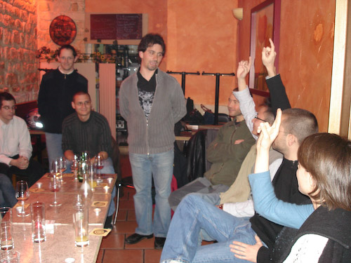 Je suis vraiment content de la soirée d’hier. Un grand merci à tous: Helène (un pseudo sur tric trac ?), Alain ( un pseudosur tric trac ?), Laurent (un pseudo sur tric trac ?), Scoubi, Pif Paf, Ticoche, Greuh, Clothilde (un pseudo tric trac ?) et Elv. Un remerciement special pour les deux organisateurs; Blanca’s et Fifi.
