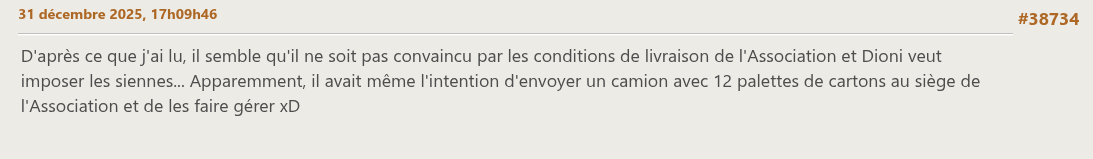 Ca bouge, ça bouge, et apparemment Dyonisos a de l’humour, et aime aussi troller, ici en l’occasion, l’association “des TseuQuesT-eurs qui n’ont pas reçu leur jeu” (qui semblerait-il, ne se rendent pas compte du boulot que c’est de gérer toutes ces boîtes volumineuses sur des palettes) !