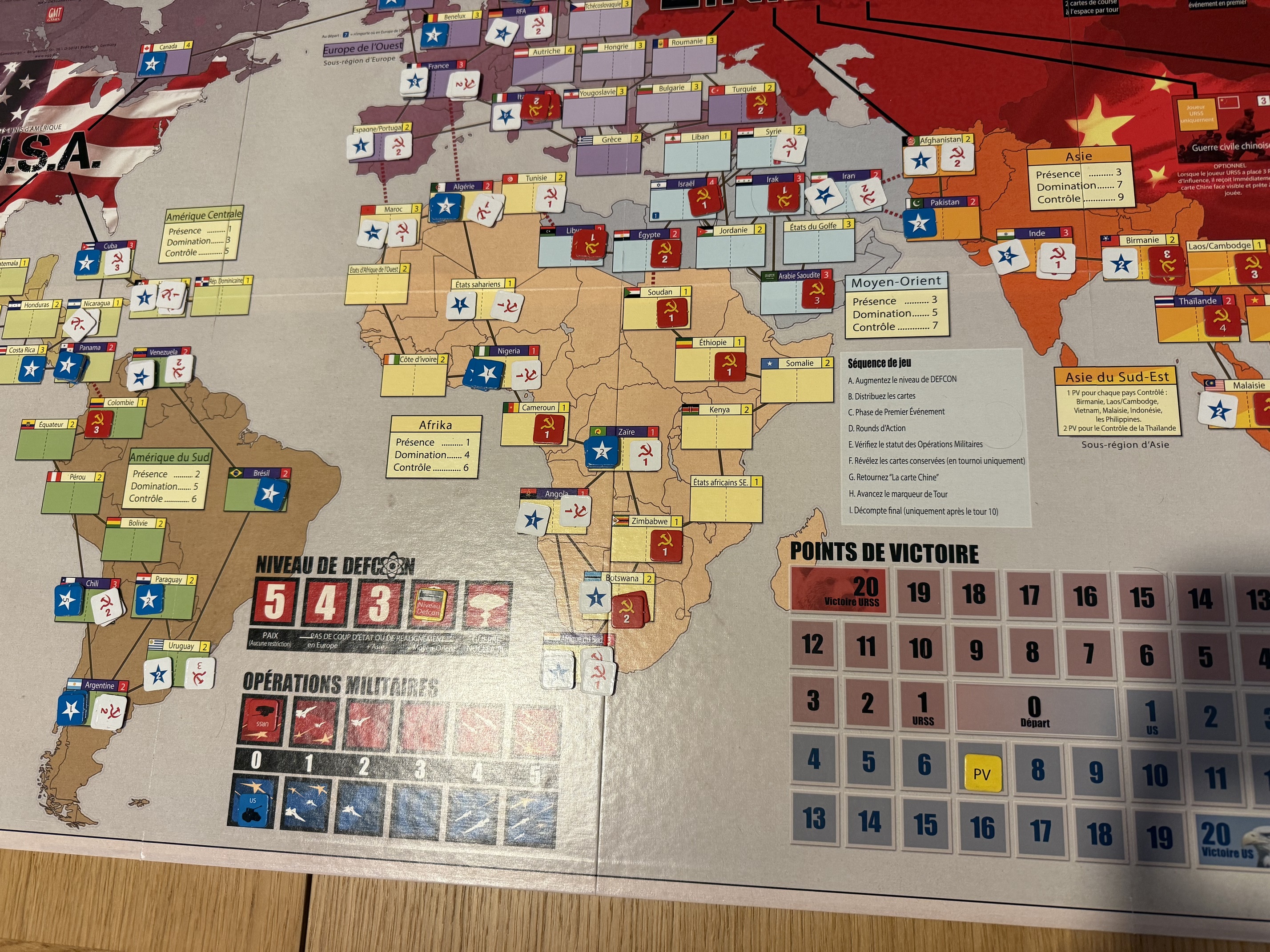 Les USA ont 3 points d’influence en France, l’URSS 1 point.