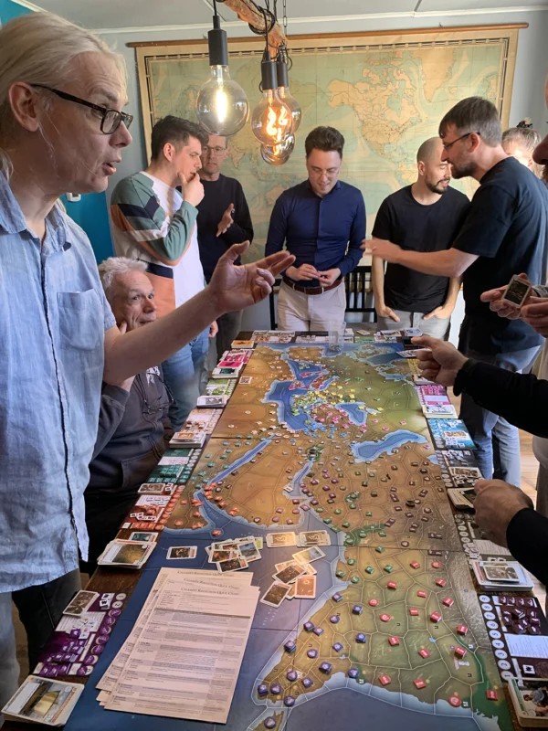 Pour l’expérience personnelle, on avait fait un Next Station London à 40 pour un festival. Le seul truc à prendre en compte, c’est autant de set des 4 couleurs que de participants. Mais c’était drôle, on faisait une annonce générale, etc.