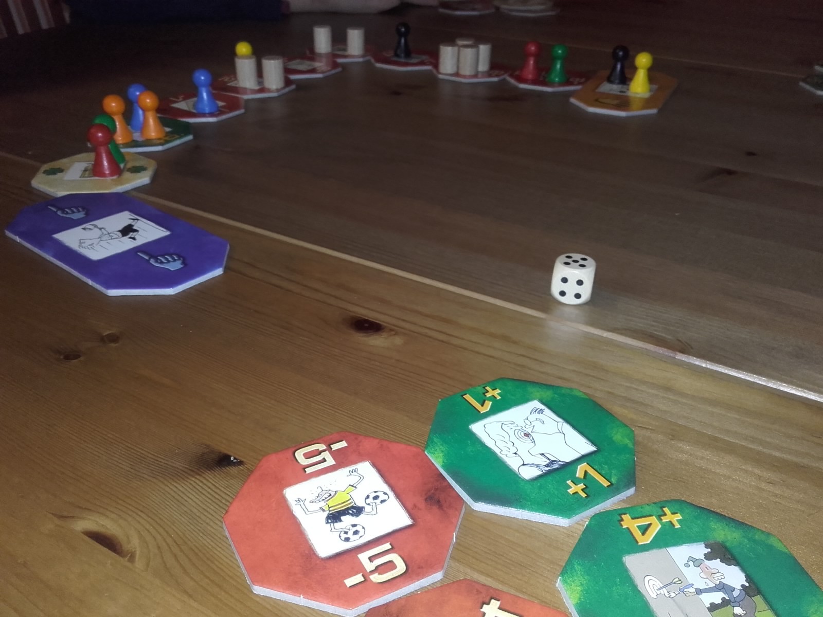 La règle dit aussi que si on place une bouée en 7, on rejoue immédiatement un tour mais PERSO on ne l'applique jamais car vraiment trop violent sachant que le 7 est le chiffre avec la plus forte probabilité avec 3 dés (on a testé et un joueur à jouer 6 fois de suite...les autres attendaient bêtement....pas fun cette règle!) Du coup on l'a modifier "On ne rejoue que si on place un 7 avec les 3 dés et du coup on ne place qu'1 bouée. C'est mieux.