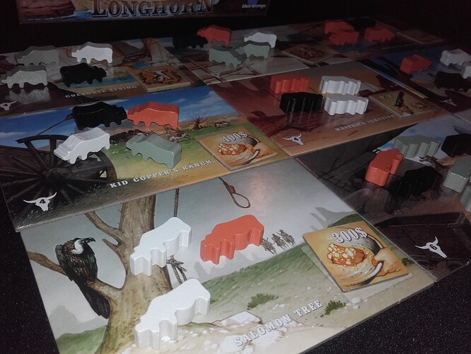Enfin ! Long à installer, long à persuader les partenaires de jeu que “Mais non, c’est juste un petit jeu” (d’ailleurs, la règle s’explique en dix secondes et, comme pour Puerto Rico, on a fait une explipartie), long à jouer (2 heures mais on a pris le temps car le jeu est très fluide et le tour du joueur prend peu de temps pour peu qu’il ait réfléchi pendant celui des autres) et long à ranger… Mais que du bonheur !